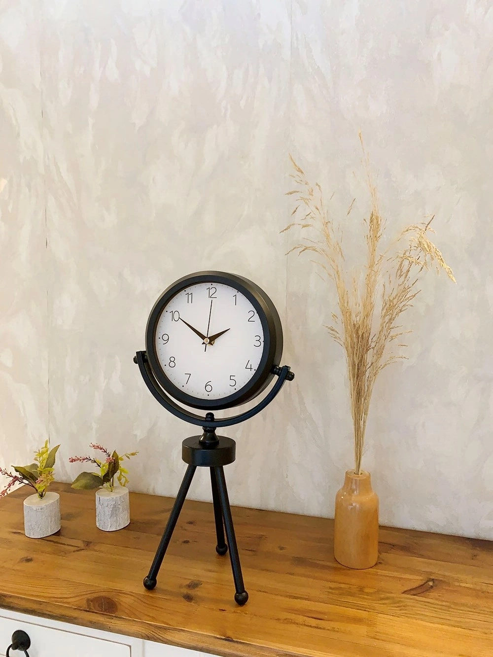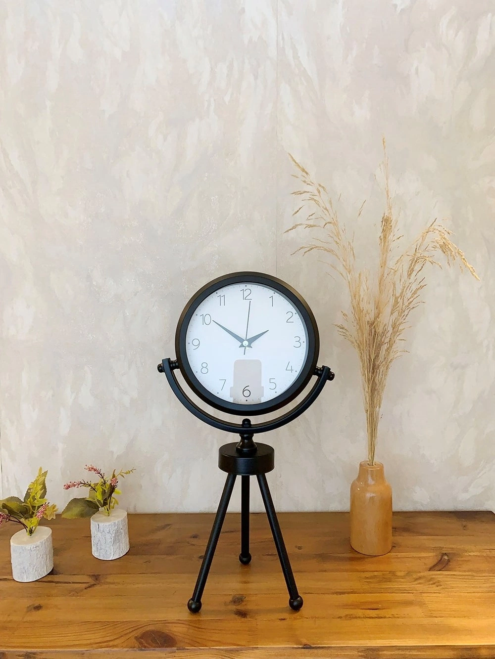 Siyah Metal Mini Tripod Zarif Masa Saati 45×26 cm