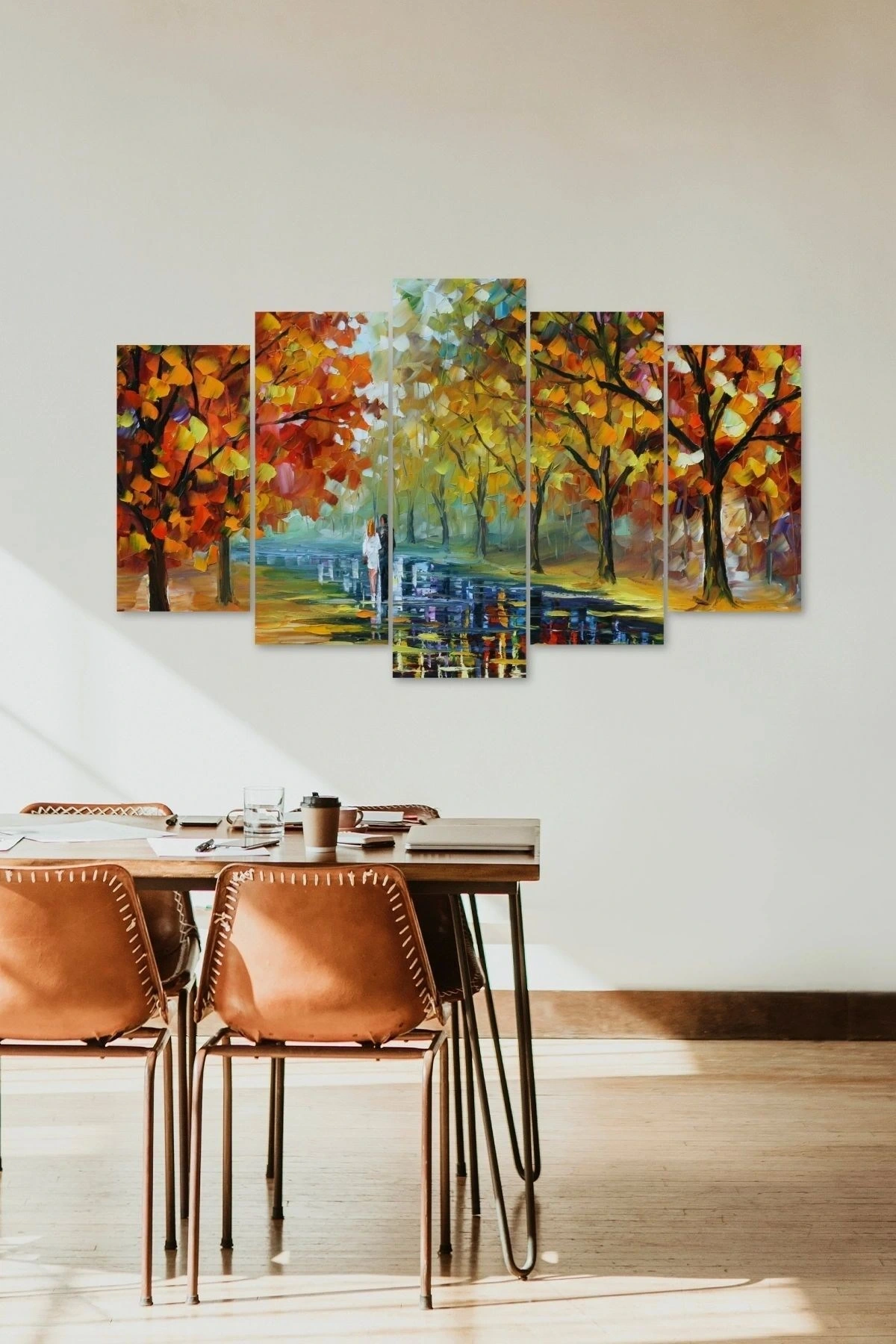 - Modern tasarımıyla evinizin dekorasyonuna şıklık katan Sonbahar yağmur 5 parçalı MDF tablo, çağdaş yaşam alanlarınızın vazgeçilmez bir parçası olacak; - Doğal ahşap malzemesiyle hem dayanıklılık hem de estetik bir görünüm sunan bu tablo, mekanınıza sıcak ve samimi bir atmosfer katıyor; - 5 parçadan oluşan set halinde gelen bu tablo, farklı boyutlardaki parçalarıyla duvarlarınıza dinamik bir dokunuş sağlıyor; - Kolay temizlenebilir yüzeyi sayesinde pratik kullanım sunan Sonbahar yağmur MDF tablo, uzun süreli kullanım için idealdir;