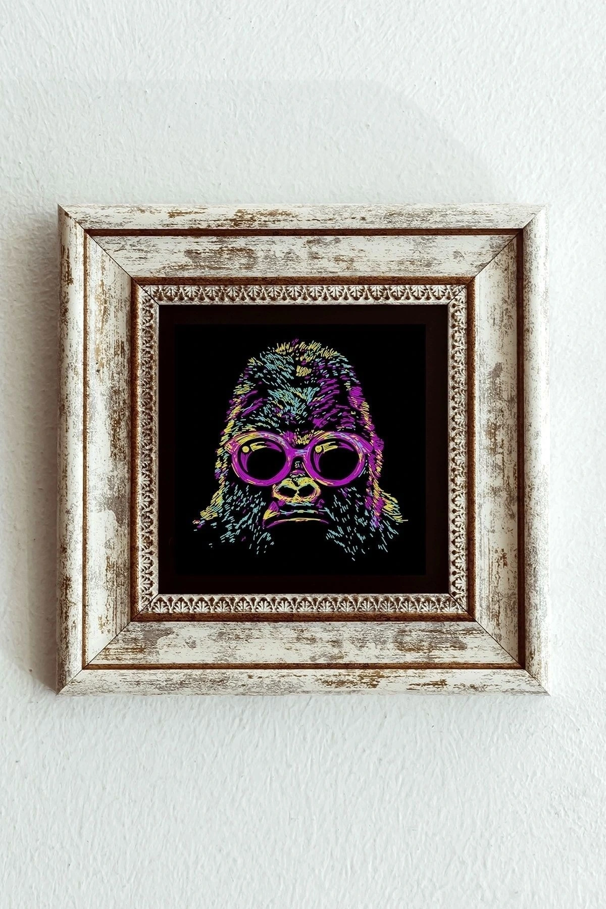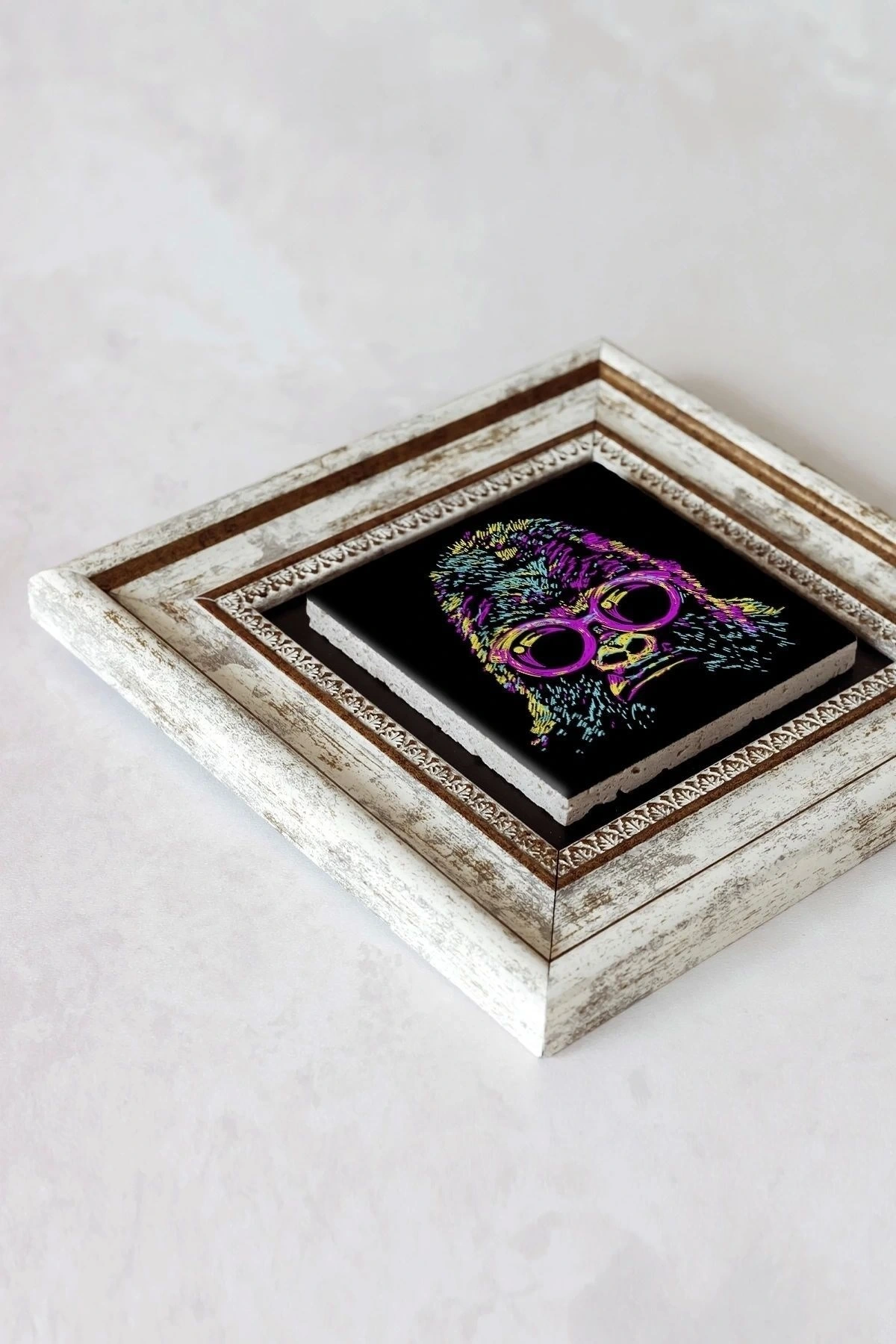 Soyut Çalışma Renkli Goril Çerçeveli Taş Tablo , Çerçeveli Taş Duvar Dekoru-enkcrcvtbl-00096 20 cm