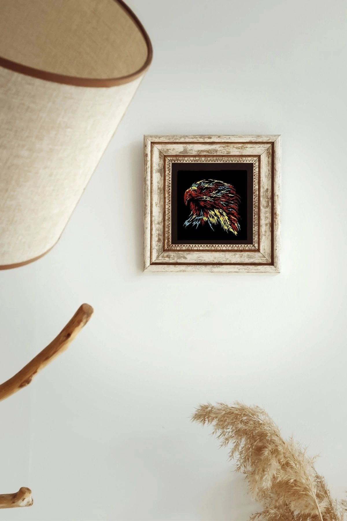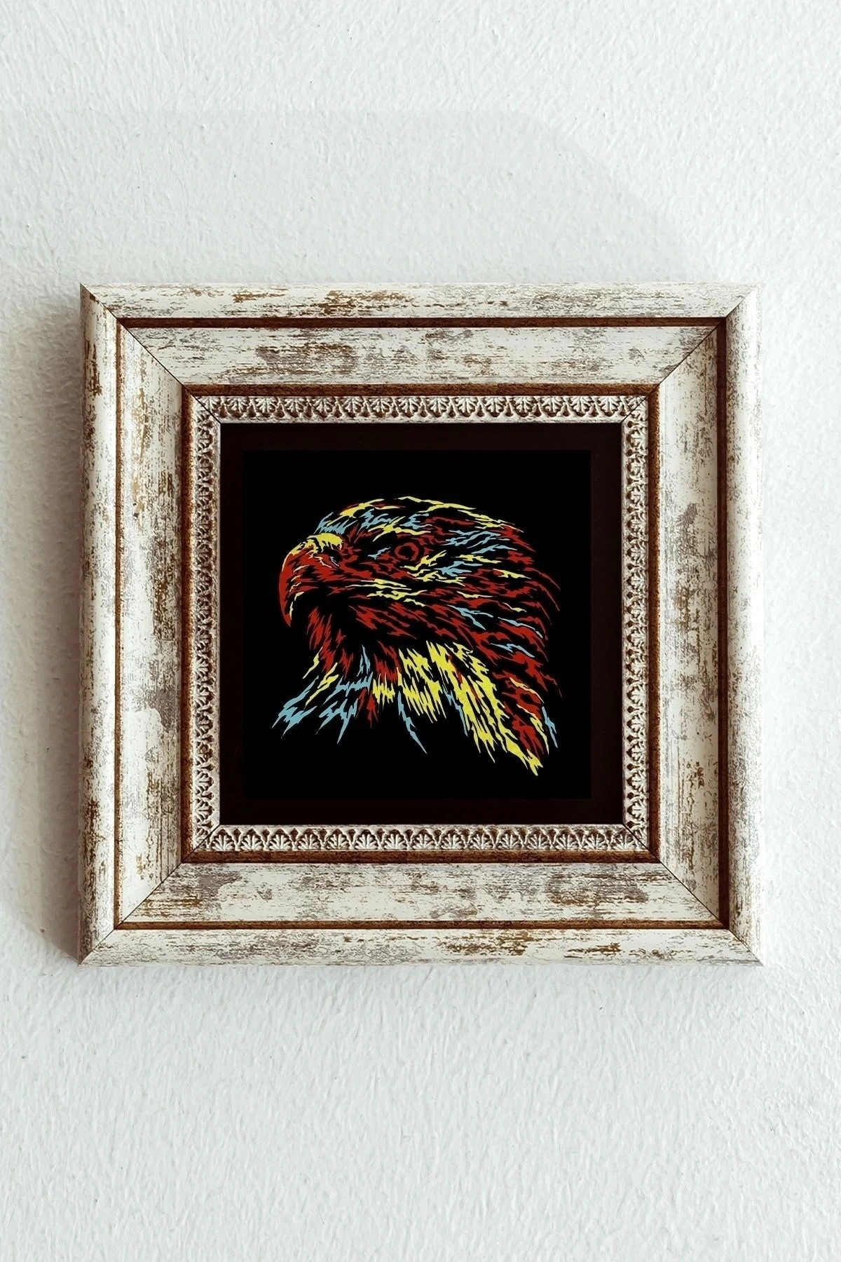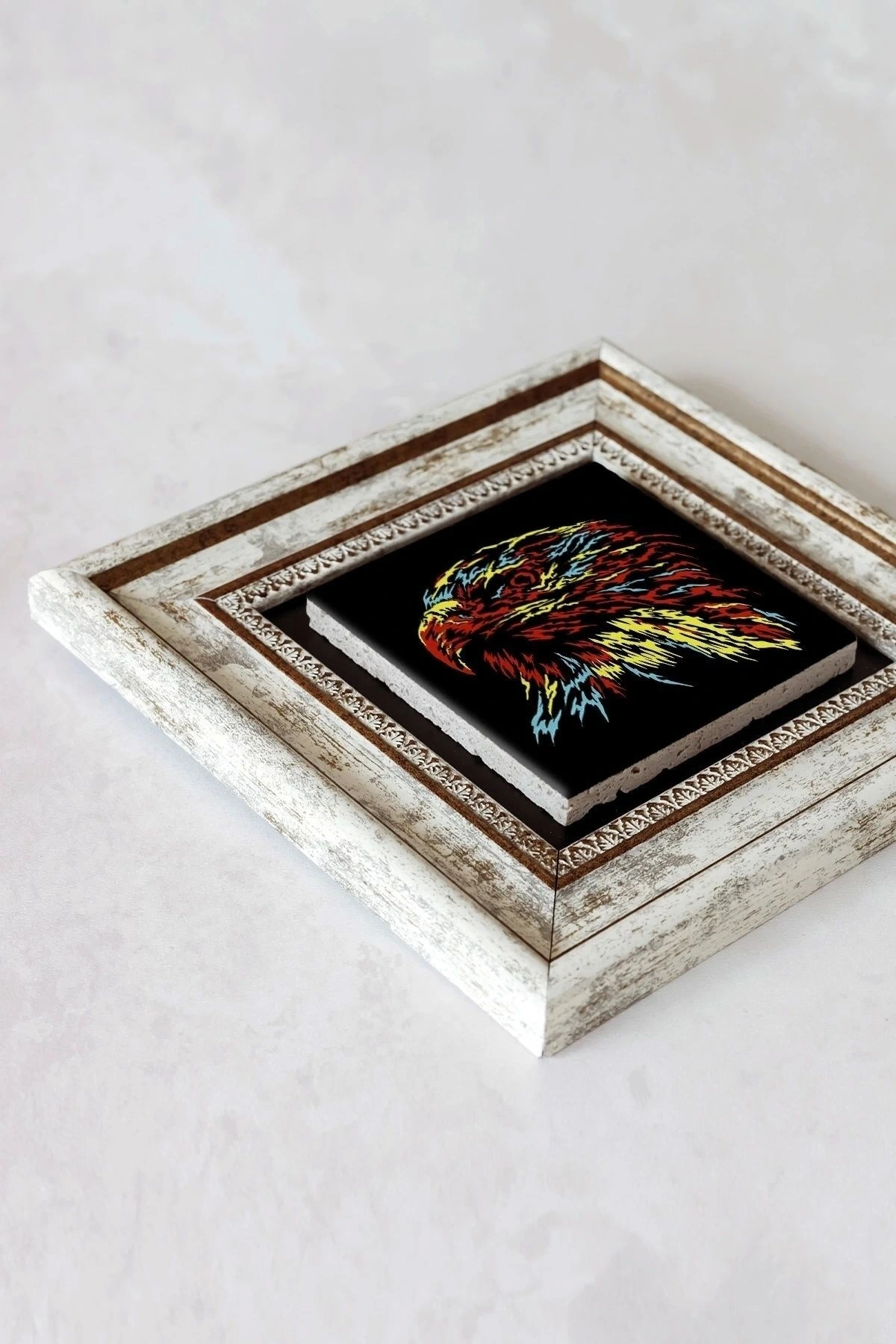 Soyut Çalışma Renkli Kuş Çerçeveli Taş Tablo , Çerçeveli Taş Duvar Dekoru-enkcrcvtbl-00097 20 cm