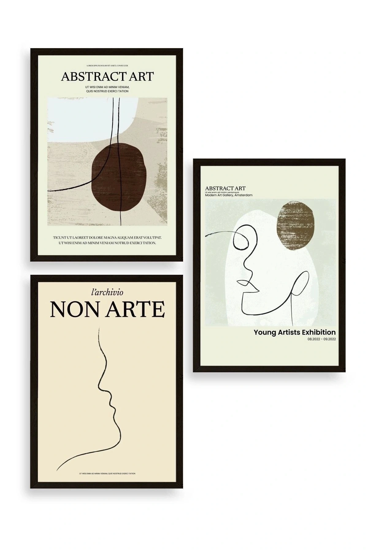 Soyut Sanat Üçlü Ahşap Çerçeveli Tablo 40 x 60