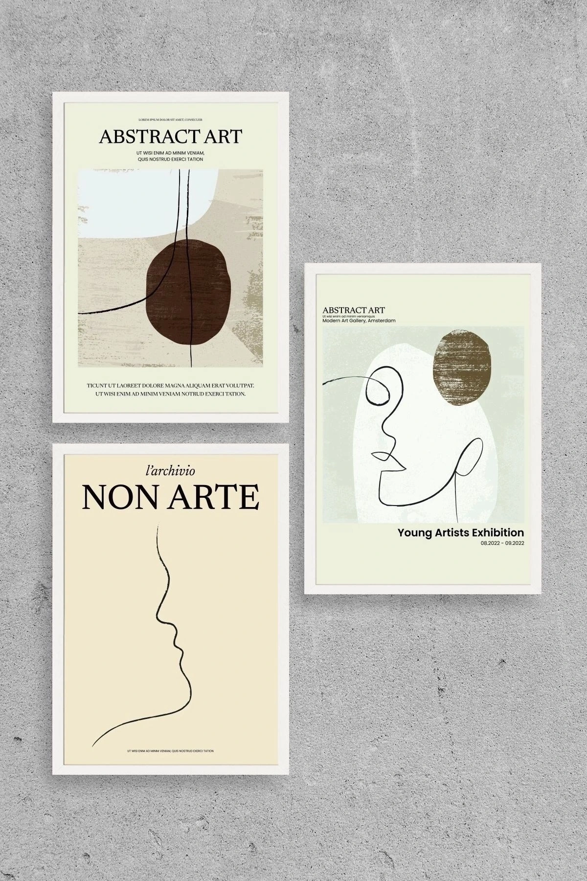 Soyut Sanat Üçlü Ahşap Çerçeveli Tablo 50 x 70