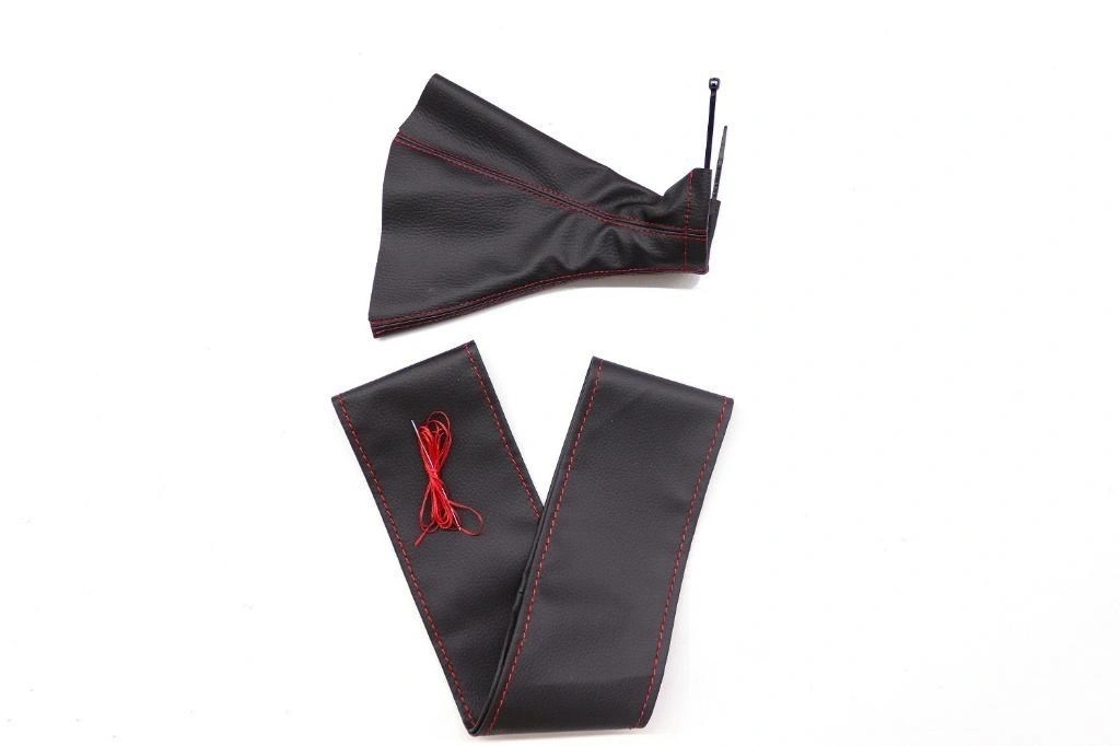 Tüm Araçlara Uyumlu Direksiyon Kılıfı Ve Vites Körüğü Siyah Deri Kırmızı Nakışlı