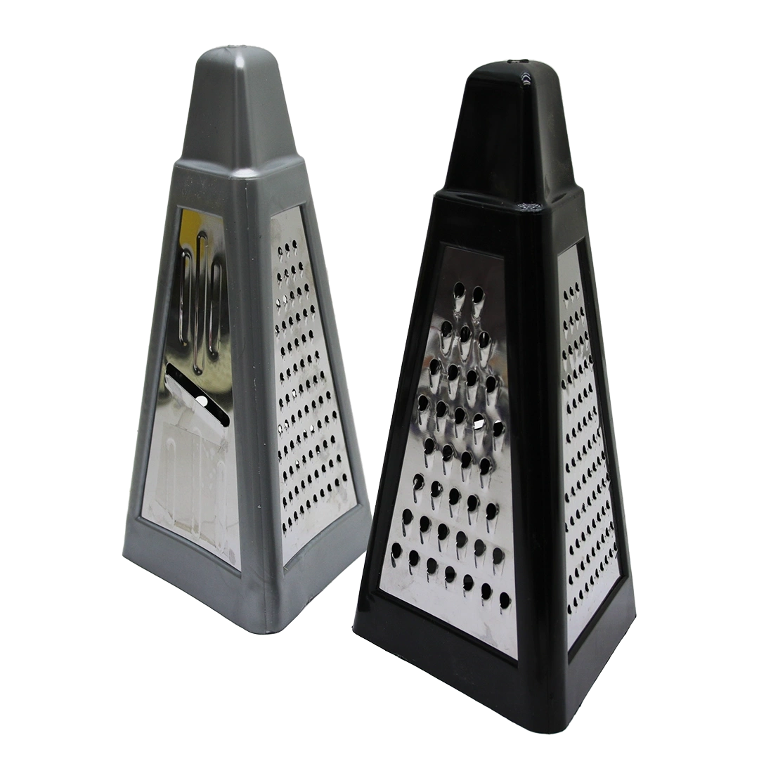 PİRAMİT METAL MUTFAK RENDESİ ÇİFT YÖNLÜ RENKLİ PLASTİK ÜSTTEN TUTMALI (5365)