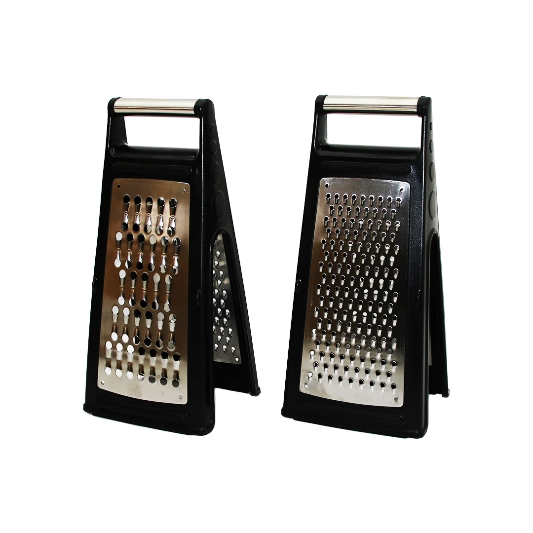 PİRAMİT METAL MUTFAK RENDESİ ÇİFT YÖNLÜ RENKLİ PLASTİK ÜSTTEN TUTMALI (5365)
