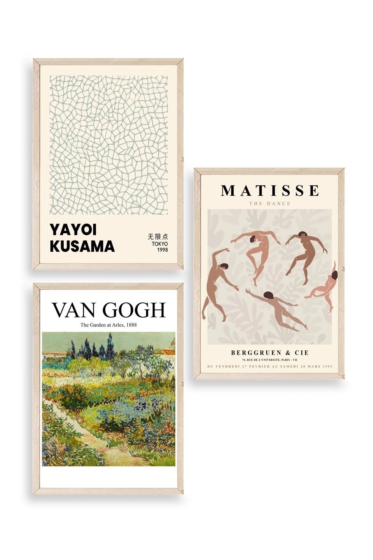 Ünlü Tablolar Üçlü Ahşap Çerçeveli Tablo 23 x 30