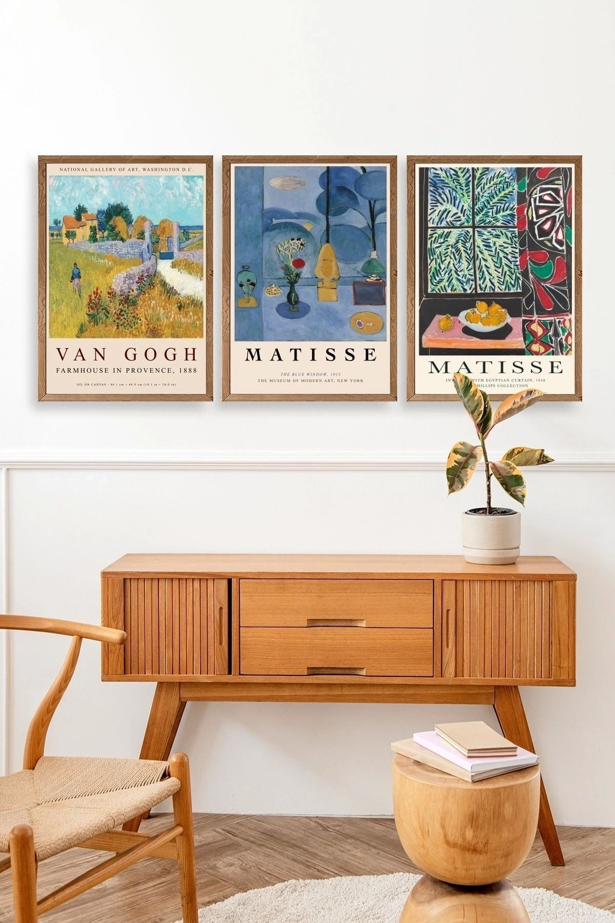 Ünlü Tablolar Üçlü Ahşap Çerçeveli Tablo 40 x 60