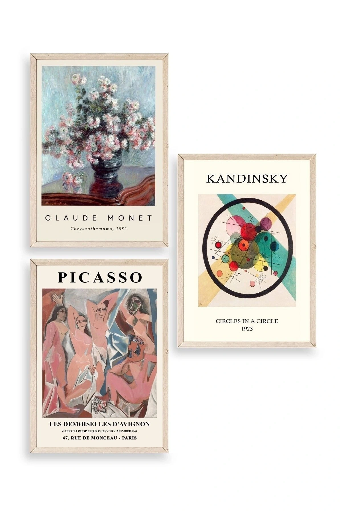 Ünlü Tablolar Üçlü Ahşap Çerçeveli Tablo 50 x 70