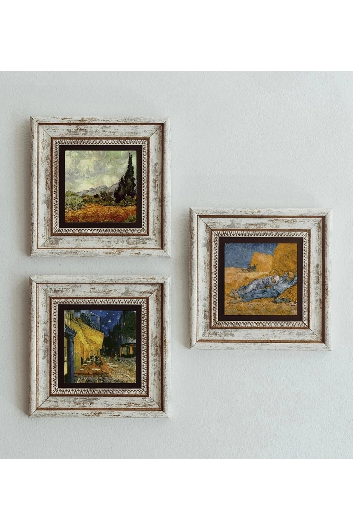 Vincent Van Gogh 3'lü Çerçeveli Taş Tablo , Çerçeveli Taş Duvar Dekoru 20 cm