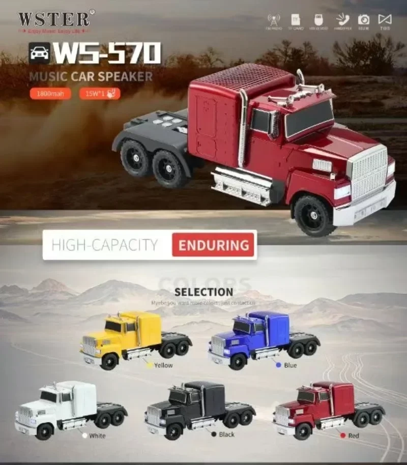 WS-570 Big Truck Model Bluetooth Speaker, Support USB, TF Card, AUX and FM Stereo, TWS
