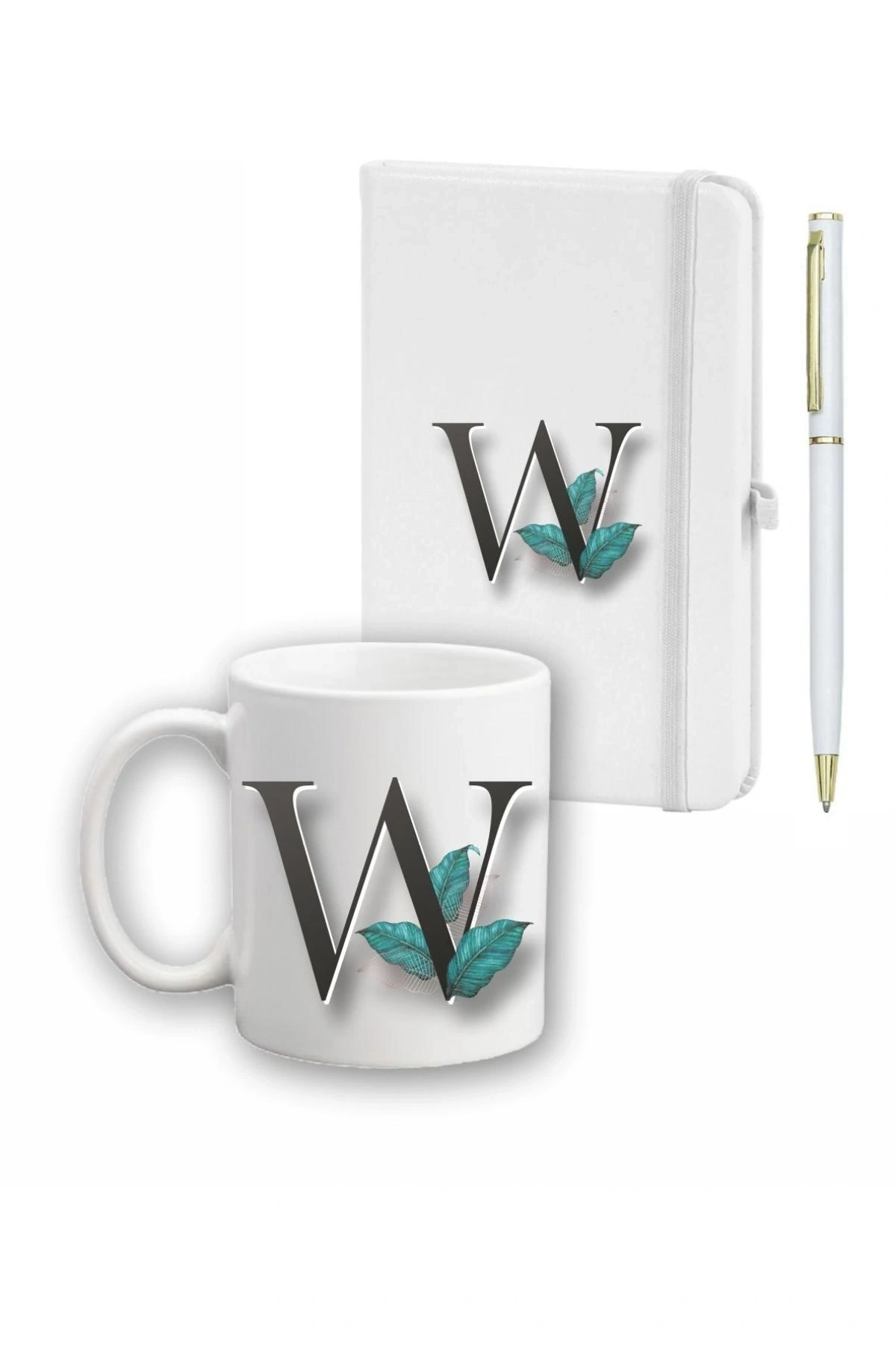 Yaprak Desen Ajanda Kupa Ve Kalem Seti