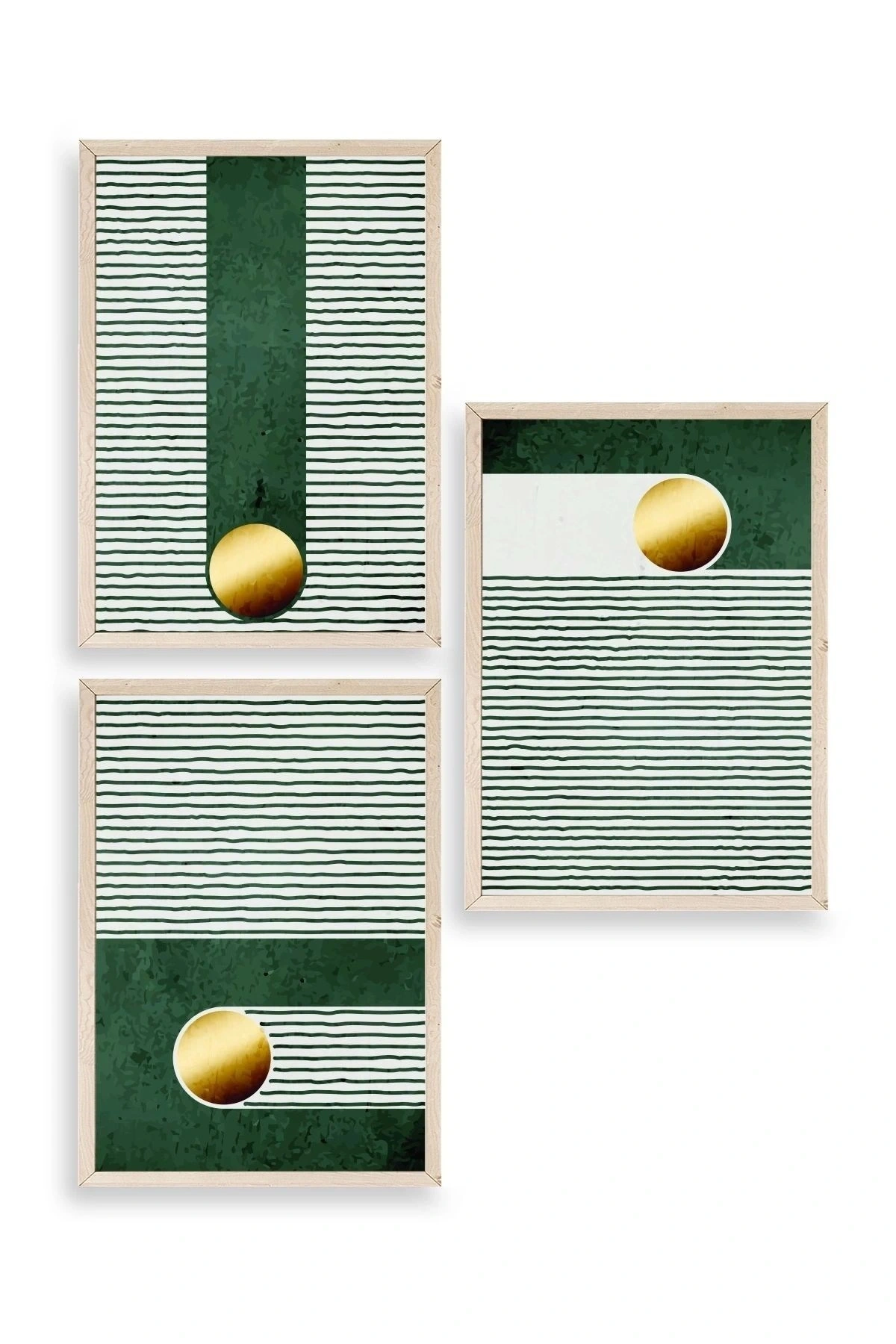 Yuvarlak Top Desenli Üçlü Ahşap Çerçeveli Tablo 30 x 42