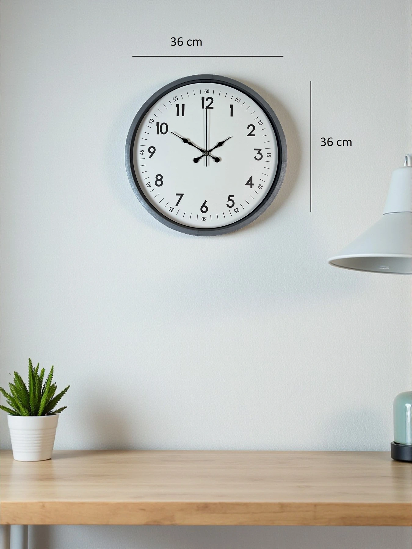 Modern, sade ve fonksiyonel bir tasarım arayanlar için üretilen bu 36 cm gri duvar saati, hem ev hem de ofis kullanımında şıklığı ve işlevselliği bir arada sunar. Gri çerçevesi, her dekorasyon stiline uyum sağlayan nötr ve modern bir görünüm sunarken; beyaz geniş kadranı ve siyah büyük rakamları sayesinde yüksek okunabilirlik sağlar. Ayrıca kadranda bulunan detaylı dakika göstergeleri (05, 10, 15...) özellikle çalışma ortamı, okul, ofis ve zaman takibinin önemli olduğu alanlar için büyük avantaj sağlar.