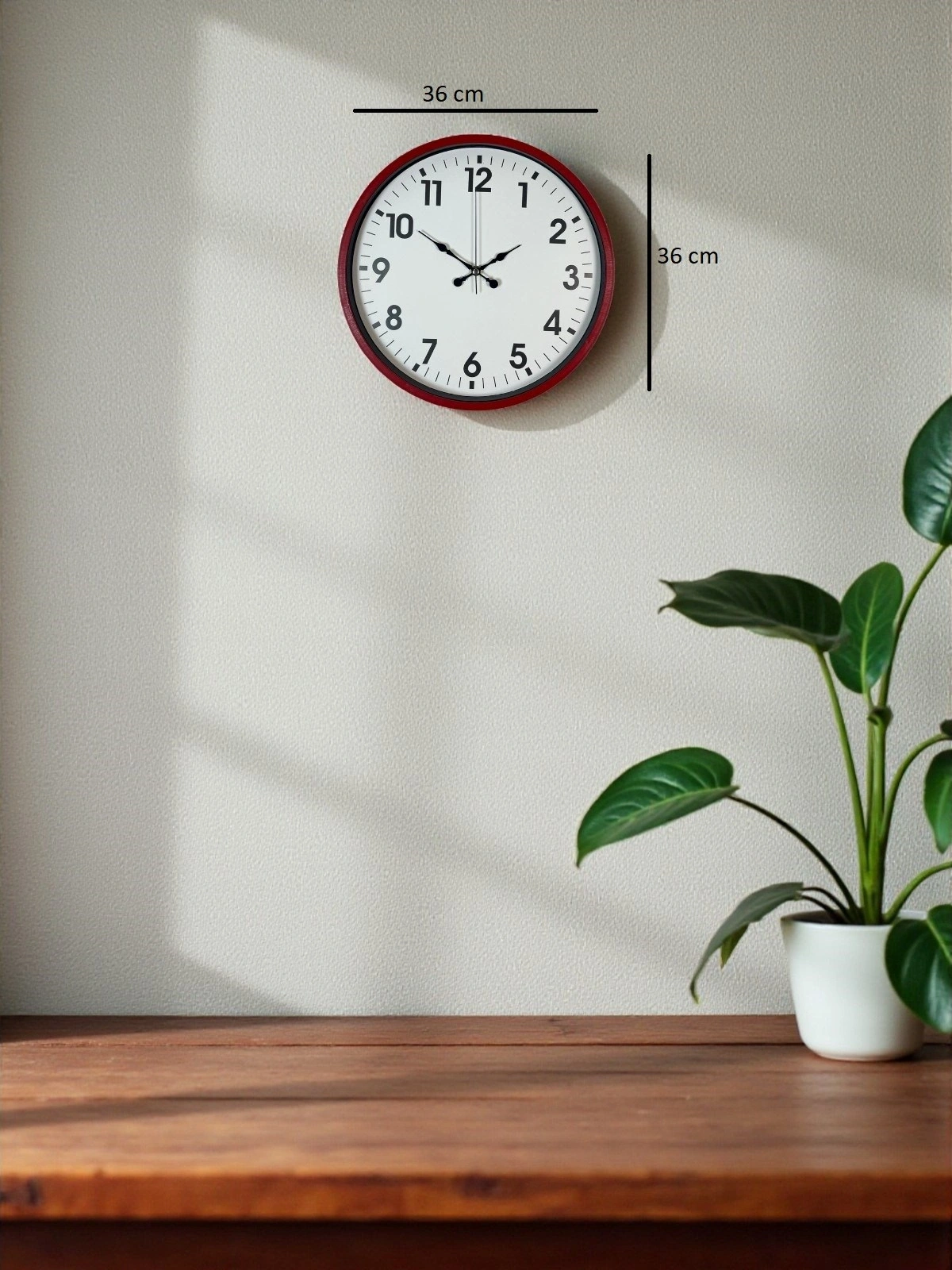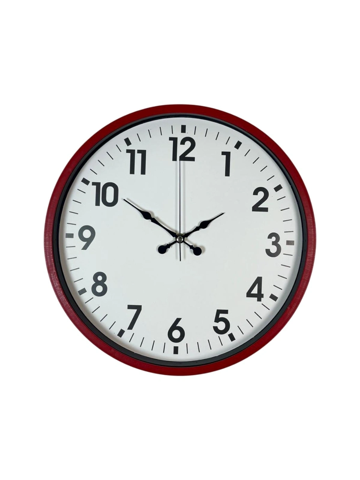 Designed for those who want to add energy and vibrancy to their living spaces, the 36 x 36 cm red framed wall clock is a stylish decorative product that combines modern and minimal styles. With its vibrant red frame and simple white dial, it creates a strong contrast in any environment and catches the eye. It is an excellent choice for homes, offices, youth rooms, kitchens, businesses, and workspaces.