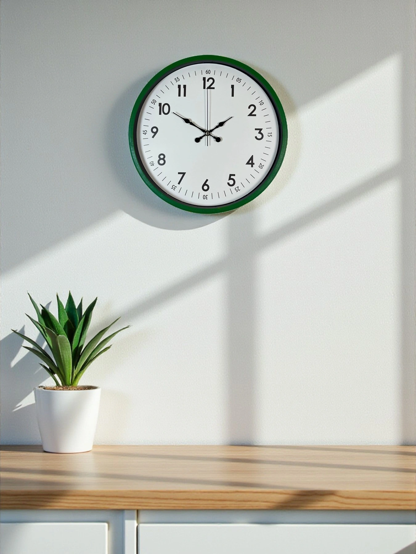 Doğanın ferahlığını ve modern tasarımı bir araya getiren bu 36 cm yeşil duvar saati, yaşam alanlarına taze ve canlı bir dokunuş katmak isteyenler için ideal bir seçimdir. Yeşil çerçevesi sayesinde mekânlara enerji, sıcaklık ve modern bir hava katar. Geniş beyaz kadranı, büyük siyah rakamları ve detaylı dakika göstergeleri (05, 10, 15...) sayesinde saati uzaktan dahi net bir şekilde okumayı kolaylaştırır. Hem dekoratif hem de fonksiyonel bir duvar saati arayanlar için mükemmel bir modeldir.