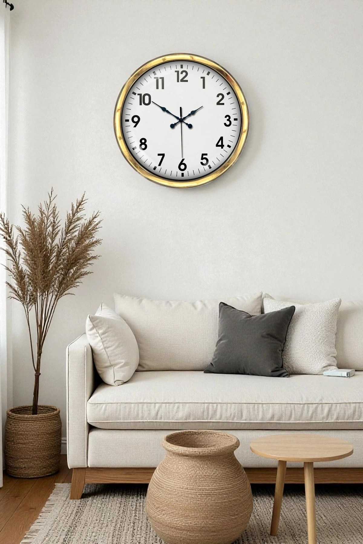 This 40 cm gold wall clock features a stylish design where modern lines are presented with an aesthetic touch. The shiny gold frame instantly adds a premium feel to its surroundings. Thanks to the large black numbers on the white background, you can easily read the time even from afar.