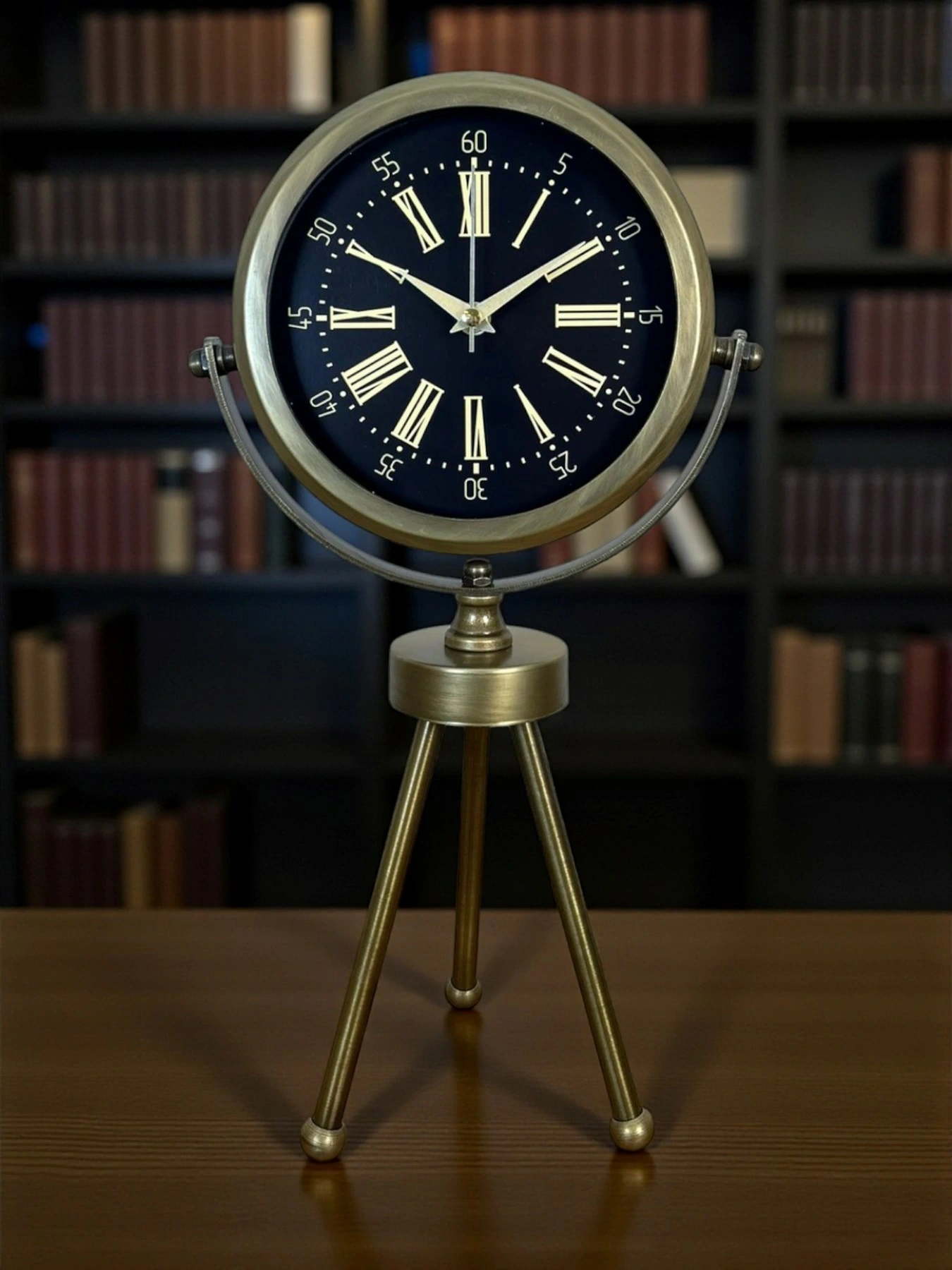 Klasik ve modern çizgiyi bir araya getiren bu 45 x 25 cm eskitme tripod masa saati, zarif tasarımı ve kaliteli malzemesiyle bulunduğu her ortamda dikkat çeken şık bir dekoratif parçadır. Tamamen metal gövdesi, üç ayaklı tripod tasarımı ve eskitme bronz kaplamasıyla hem sağlamlık hem de estetik sunan bu saat, dekorasyonda güçlü bir tamamlayıcı olarak öne çıkar.
