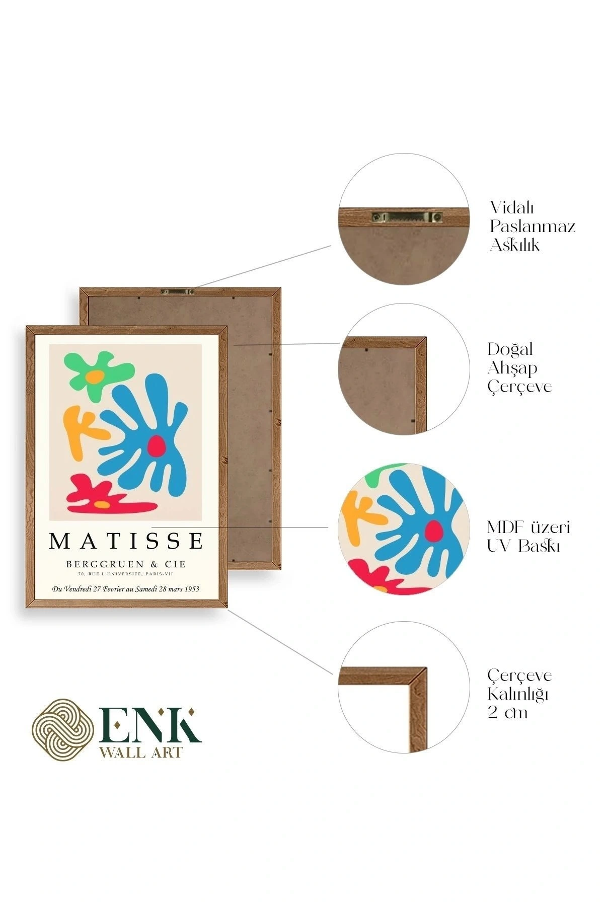 Tablolarımız gerçek ahşap çerçevelidir, çerçeve görünümlü değildir. ; ENK Wall Art Olarak Ahşap Çerçeveli Tablolar Üretiyoruz. ; Tablolarımız tek parça, 3 Parça, 5 Parça ve daha çok kategoride tasarımcılarımız tarafından ev ve ofisleriniz duvarları süslemek için tasarlanmaktadır. ; Ahşap Çerçeveli Duvar Tabloları ile yaşam alanlarınıza yepyeni bir görünüm kazandırın. ; Yıllarca dayanacağından emin olduğumuz sağlam çerçevelere sahip yüksek kaliteli ahşaptan üretilmiştir. ; İster bir köşeyi süslemek isteyin, ister evinizi yenilemek , bu ahşap tablolar herhangi bir yaşam alanına stil ve işlev getirecektir. ; Duvara kolay bir şekilde monte edilir. ; Uzun ömürlü kullanım için sağlam ahşap çerçeveden yapılmış, dayanıklı ve güçlü. ; Duvara monte edilebilir tasarımı, yaşam alanlarında veya yatak odalarında duvara kolayca asılmasını sağlar. ; Pürüzsüz üst yüzeyi temiz kalmayı kolaylaştırır. ; Herhangi bir stile uyacak şekilde çeşitli renklerde gelir. ; Kolay yeniden düzenleme için hafif ve portatif. ; Küçük oturma odaları veya dar alanlar için mükemmel boyut. ; Eve taşınma hediyesi olarak idealdir. ; Herhangi bir evin dekorunu süslemek için harika bir yol. ; Herhangi bir modern veya çağdaş iç tasarıma mükemmel bir katkı. ; Tablo içi 3 mm mdf (ahşap) malzeme üzeri uv baskıdır. ; Renkler canlı ve solma yapmaz. ; Kırılma, bükülme ve çizilmeye karşı dayanıklıdır.;