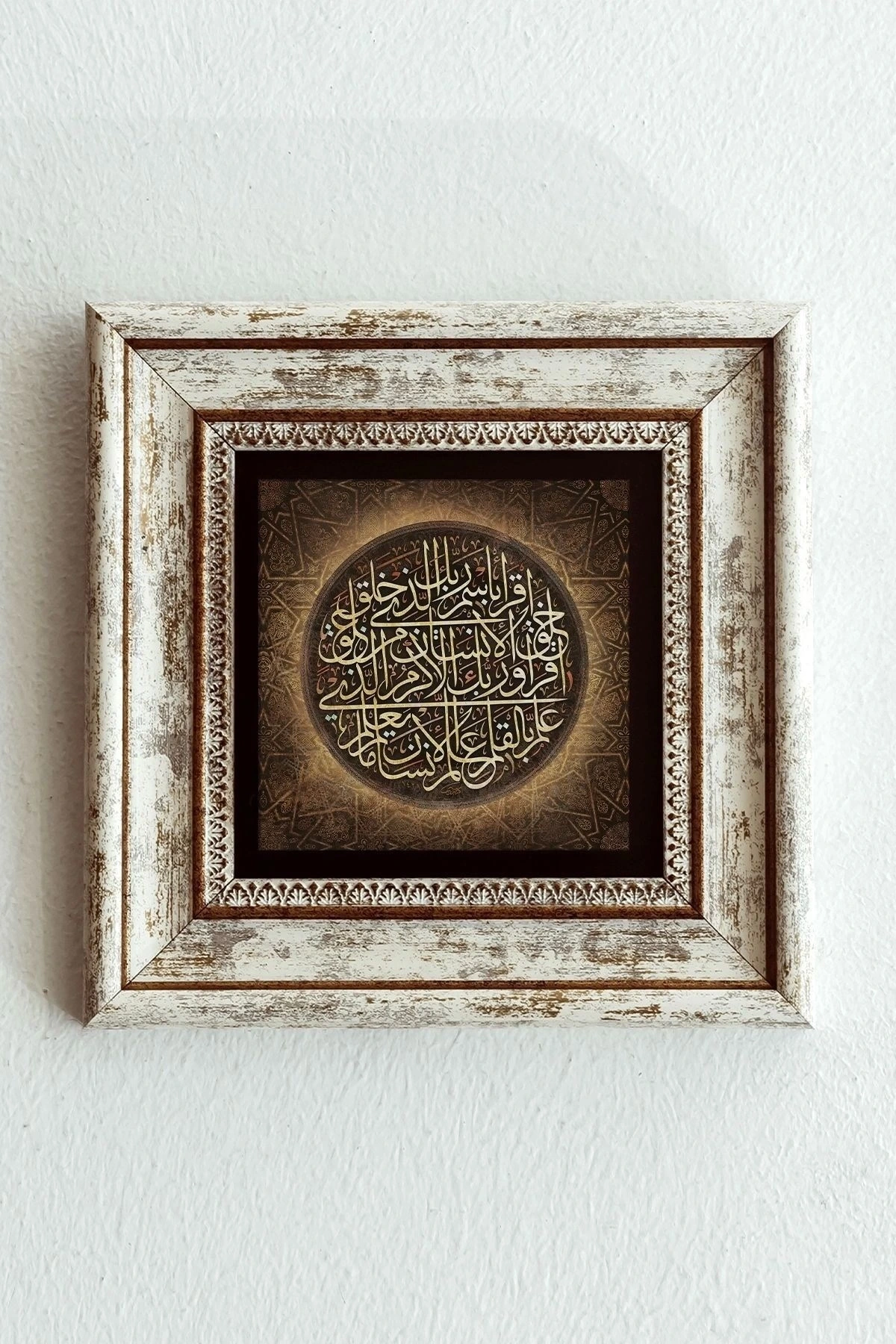 Hat Yazılı Çerçeveli Taş Tablo , Çerçeveli Taş Duvar Dekoru-enkcrcvtbl-00138 20 cm