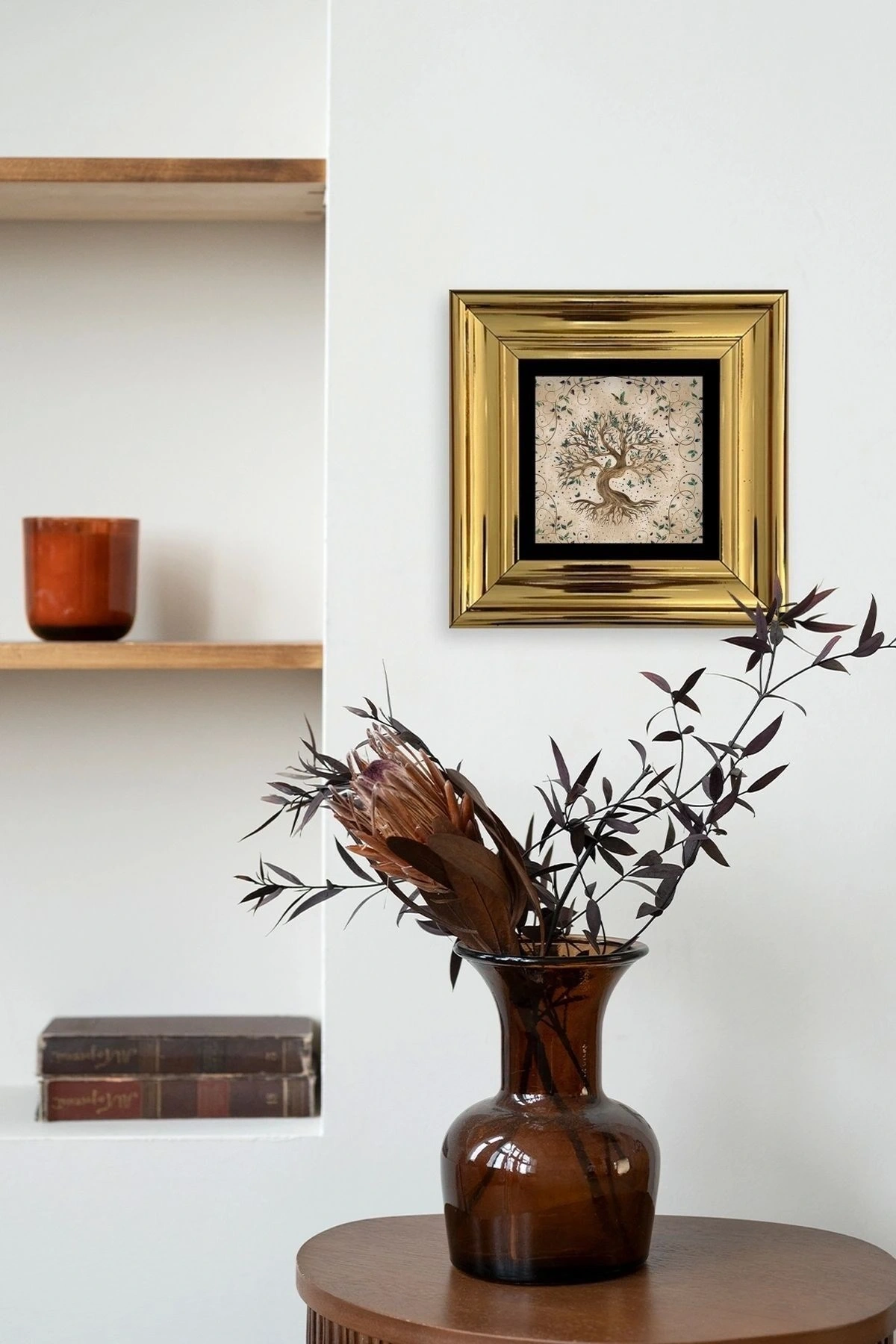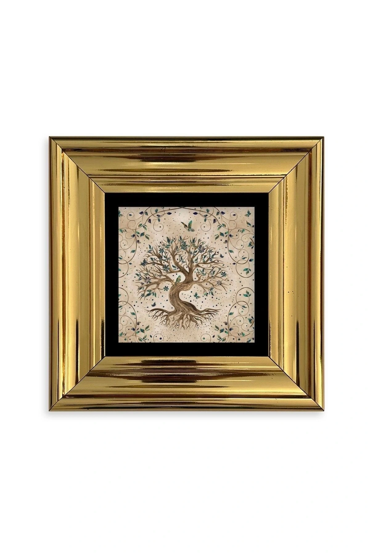 Hayat Ağacı Çerçeveli Taş Tablo 20 cm