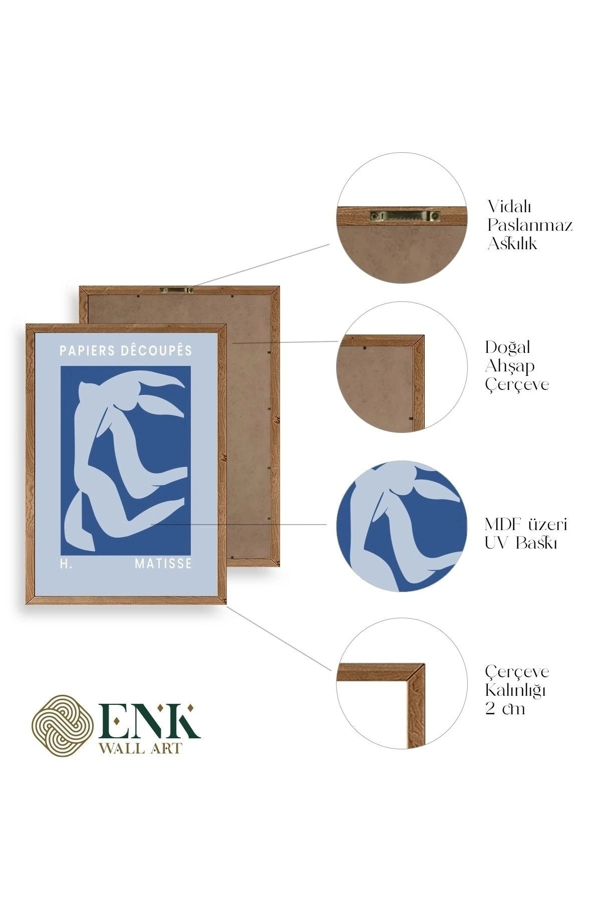 Tablolarımız gerçek ahşap çerçevelidir, çerçeve görünümlü değildir. ; ENK Wall Art Olarak Ahşap Çerçeveli Tablolar Üretiyoruz. ; Tablolarımız tek parça, 3 Parça, 5 Parça ve daha çok kategoride tasarımcılarımız tarafından ev ve ofisleriniz duvarları süslemek için tasarlanmaktadır. ; Ahşap Çerçeveli Duvar Tabloları ile yaşam alanlarınıza yepyeni bir görünüm kazandırın. ; Yıllarca dayanacağından emin olduğumuz sağlam çerçevelere sahip yüksek kaliteli ahşaptan üretilmiştir. ; İster bir köşeyi süslemek isteyin, ister evinizi yenilemek , bu ahşap tablolar herhangi bir yaşam alanına stil ve işlev getirecektir. ; Duvara kolay bir şekilde monte edilir. ; Uzun ömürlü kullanım için sağlam ahşap çerçeveden yapılmış, dayanıklı ve güçlü. ; Duvara monte edilebilir tasarımı, yaşam alanlarında veya yatak odalarında duvara kolayca asılmasını sağlar. ; Pürüzsüz üst yüzeyi temiz kalmayı kolaylaştırır. ; Herhangi bir stile uyacak şekilde çeşitli renklerde gelir. ; Kolay yeniden düzenleme için hafif ve portatif. ; Küçük oturma odaları veya dar alanlar için mükemmel boyut. ; Eve taşınma hediyesi olarak idealdir. ; Herhangi bir evin dekorunu süslemek için harika bir yol. ; Herhangi bir modern veya çağdaş iç tasarıma mükemmel bir katkı. ; Tablo içi 3 mm mdf (ahşap) malzeme üzeri uv baskıdır. ; Renkler canlı ve solma yapmaz. ; Kırılma, bükülme ve çizilmeye karşı dayanıklıdır.;