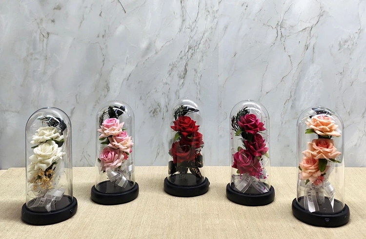Işıklı Müzikli Cam Fanus İçinde Romantik Gül
