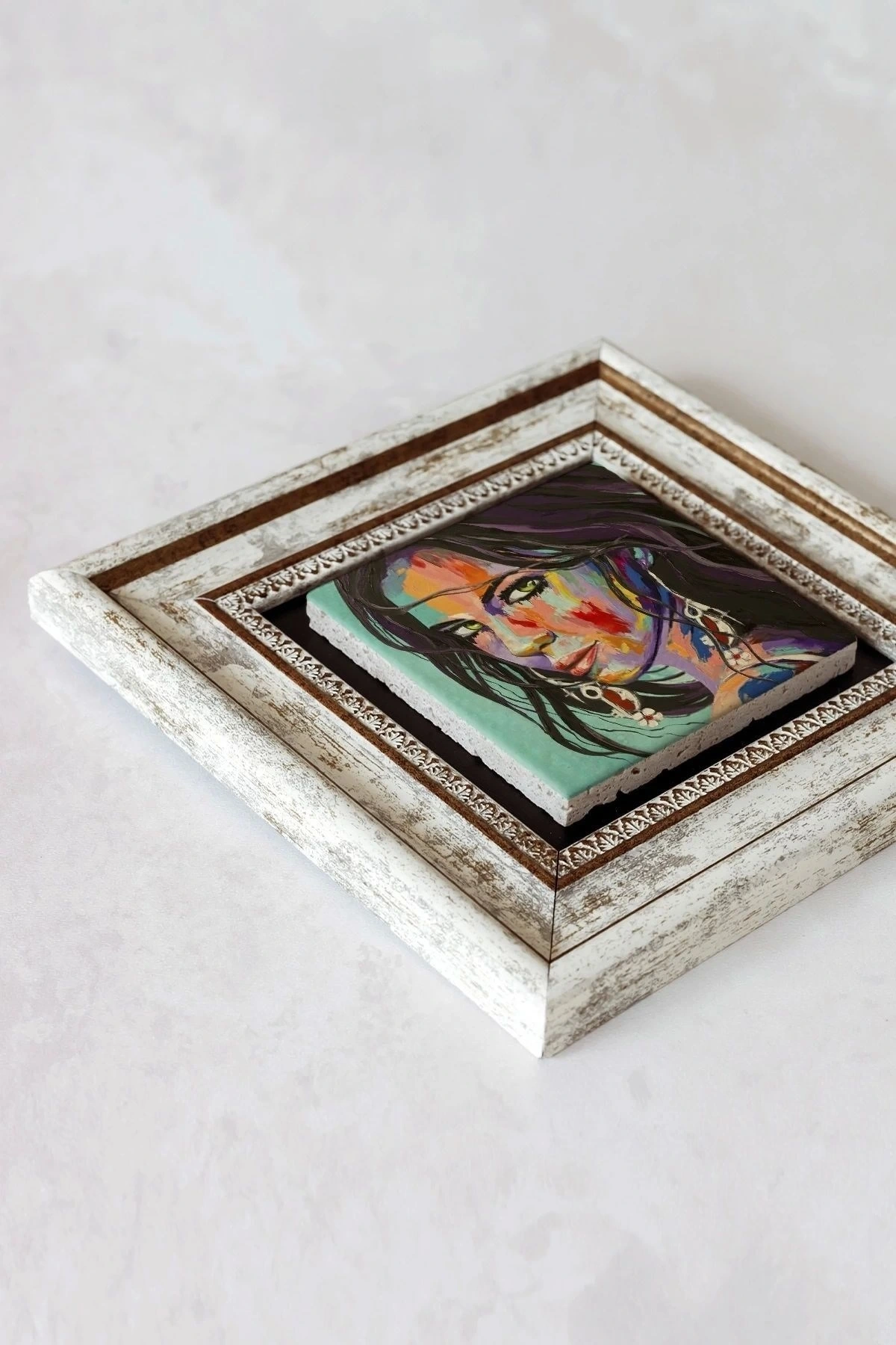 Kadın Çerçeveli Taş Tablo , Çerçeveli Taş Duvar Dekoru-enkcrcvtbl-00181 20 cm