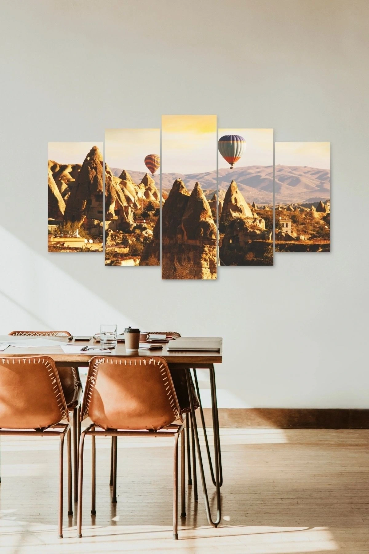 - Modern tasarımıyla evinizin dekorasyonuna şıklık katan Kapadokya manzara 5 parçalı MDF tablo, mekanınıza doğal bir hava katıyor; - Yüksek kaliteli MDF malzemesi sayesinde uzun ömürlü kullanım sunar ve dayanıklılığı ile ön plana çıkar; - Ahşap yapısı, hem estetik hem de sağlamlık açısından ideal bir seçim olup, mekanınıza sıcak ve samimi bir atmosfer yaratır;