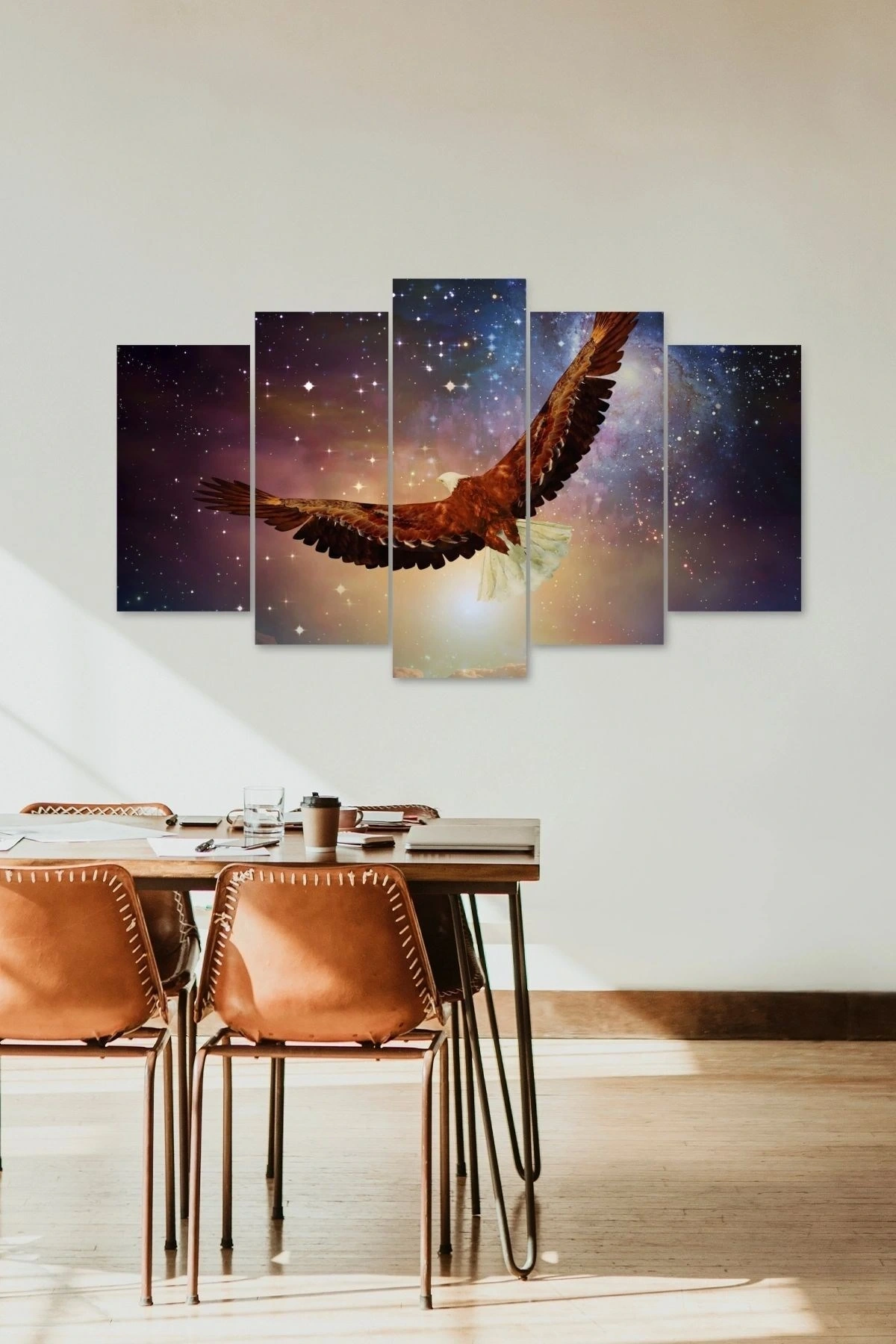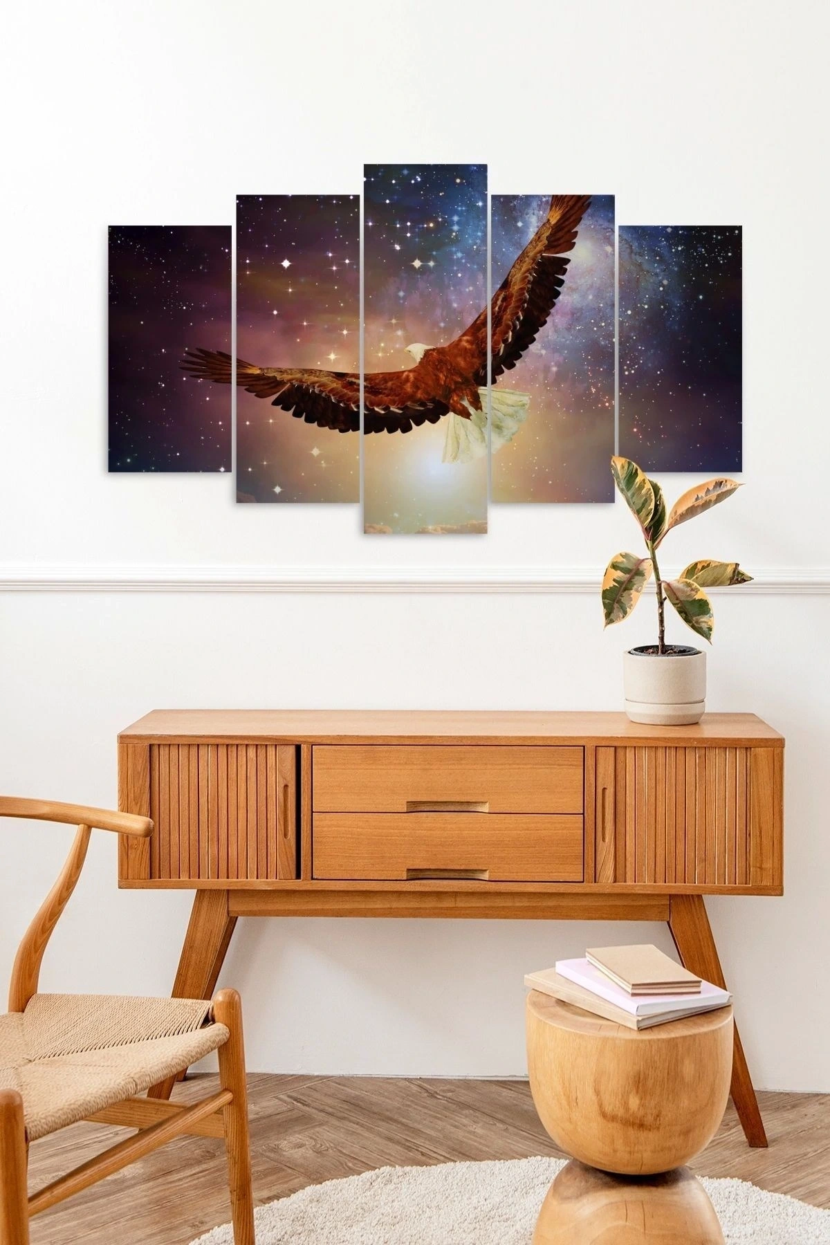 Modern dekorasyonun vazgeçilmez bir parçası olan Kartal 5 parçalı MDF tablo, evinizin veya ofisinizin atmosferini zenginleştirir; Kaliteli MDF malzemesi sayesinde uzun ömürlü kullanım sunar ve dayanıklılığı ile ön plana çıkar; Modern tasarımıyla dikkat çeken bu tablo, mekanınıza şık bir dokunuş katar ve dekorasyonunuzu tamamlar; Beş parçadan oluşan set halinde sunulan bu ürün, farklı boyutlardaki parçalarıyla çeşitli düzenlemeler yapma imkanı sağlar;