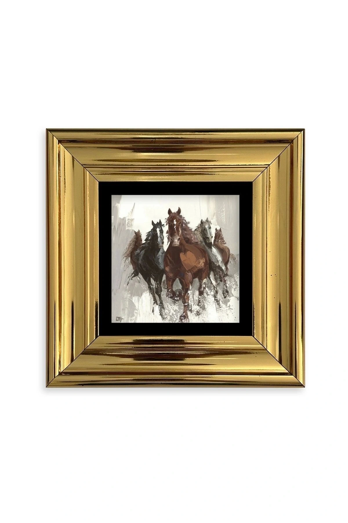 Koşan Atlar Yağlı Boya Çerçeveli Taş Tablo 20 cm
