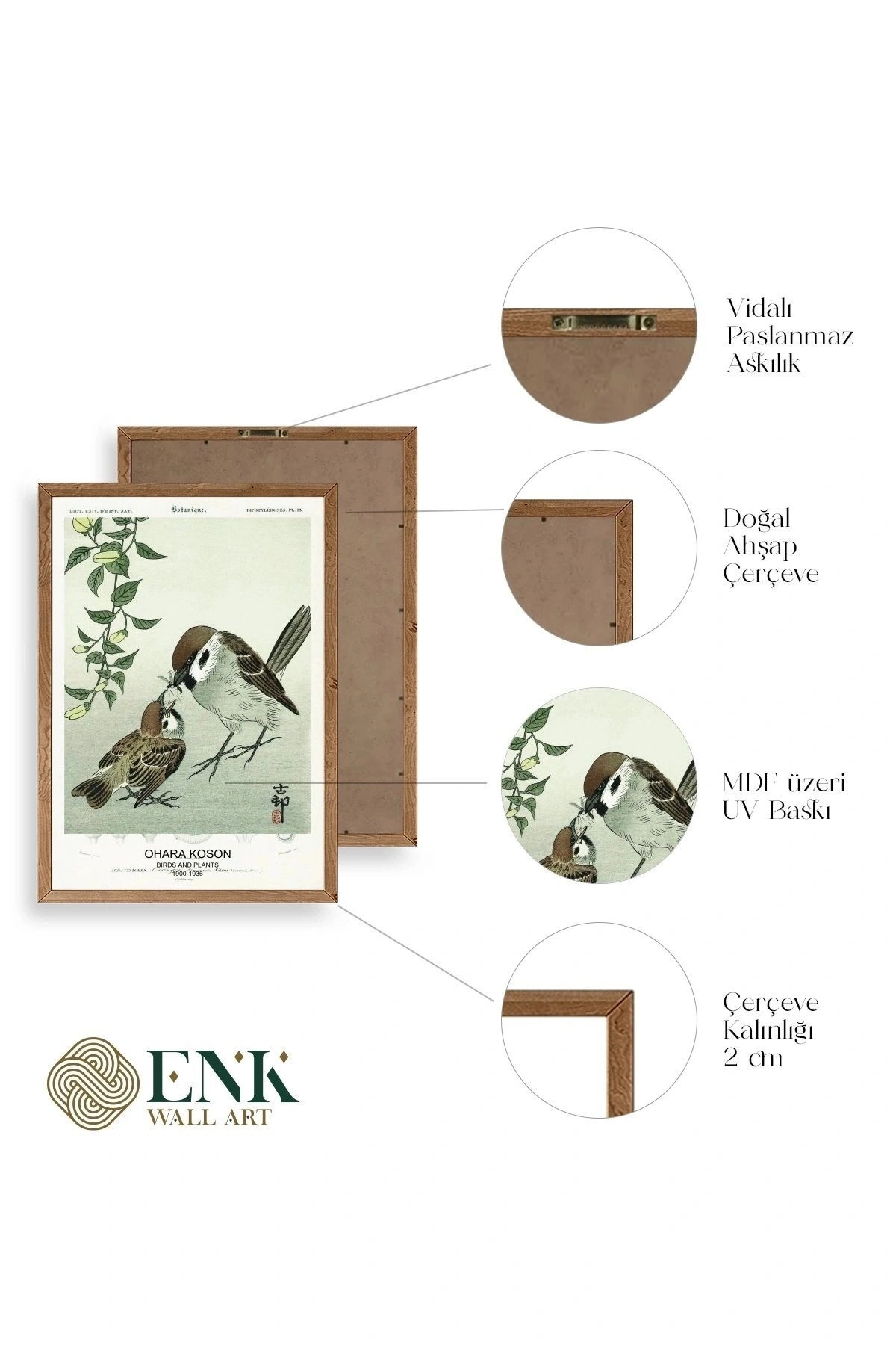 Kuşlar Ahşap Çerçeveli Tablo 17 x 23