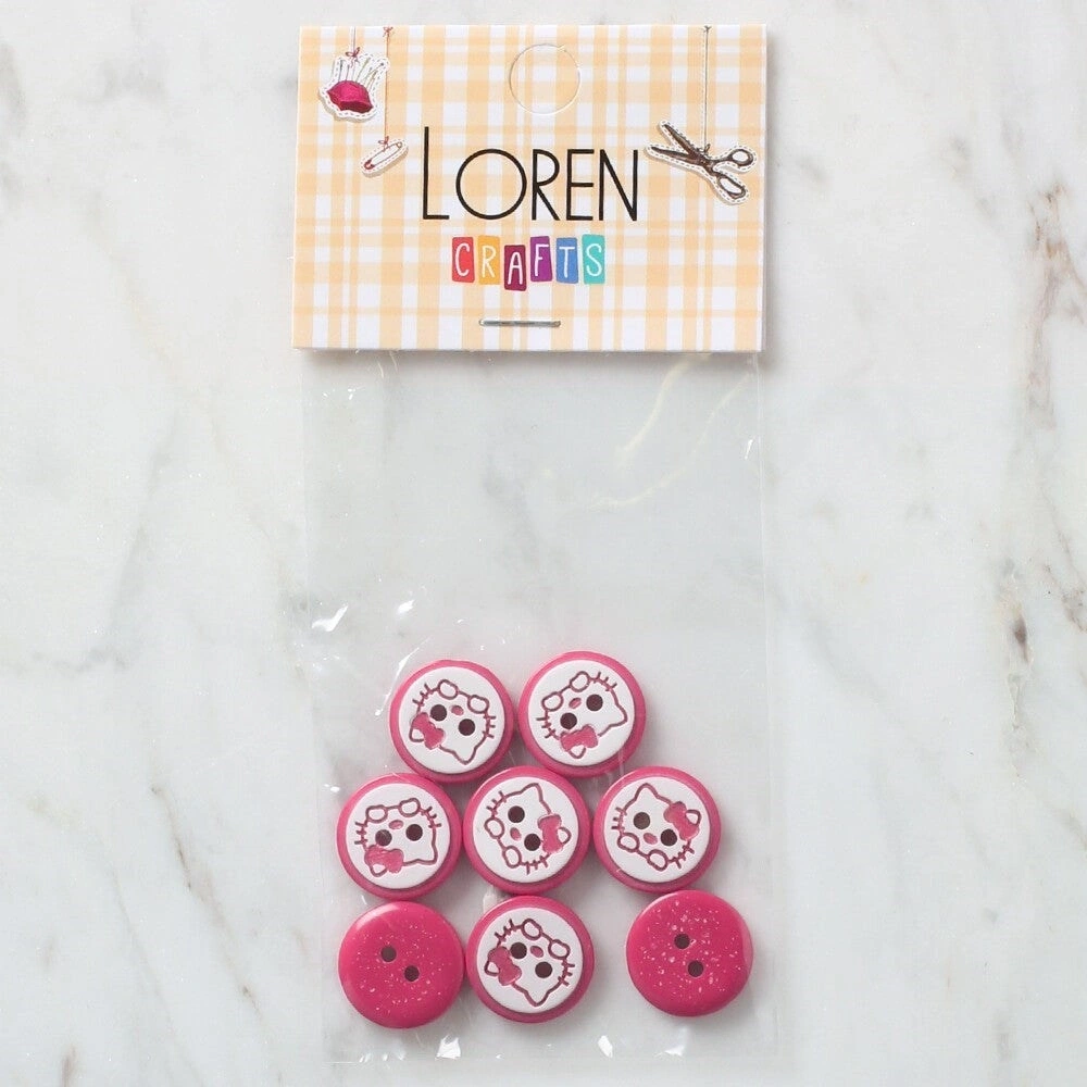 Loren Crafts 8 li Fuşya Kedi Düğme - 587