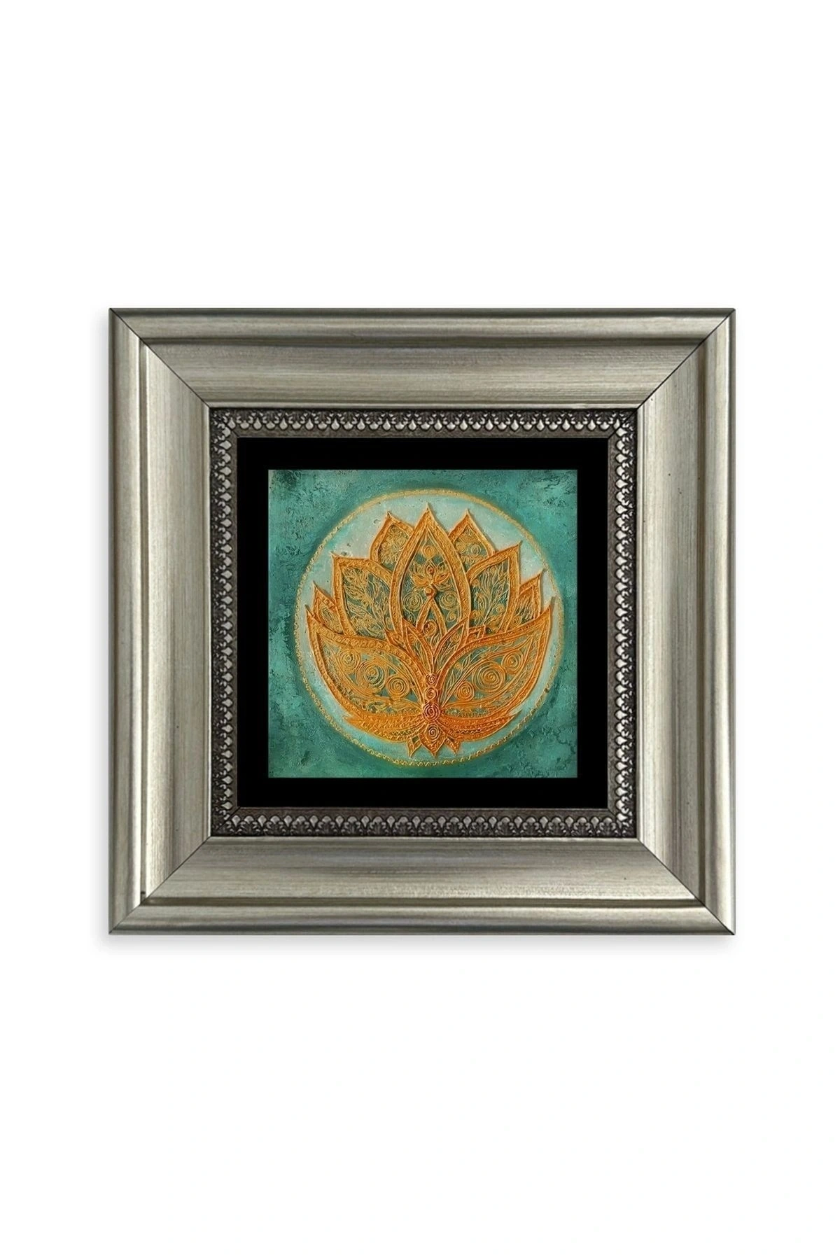 Lotus Çiçeği Çerçeveli Taş Tablo 20 cm