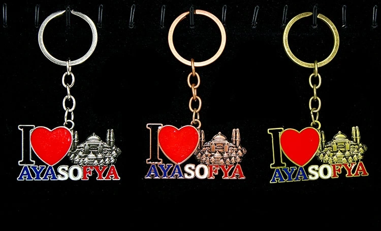 METAL AYASOFYA ANAHTARLIK (I LOVE AYASOFYA)Ürün Özellikleri10 cm boyutlarındaki "I Love Ayasofya" yazılı metal anahtarlık, şık ve anlamlı bir tasarıma sahiptir. Ayasofya'nın tarihi ve kültürel önemini simgeleyen bu anahtarlık, "I Love Ayasofya" yazısıyla duygusal bir dokunuş ekler. Metal malzeme, anahtarlığı dayanıklı ve uzun ömürlü yapar. Hem dekoratif hem de işlevsel bir aksesuar olarak kullanılabilir ve İstanbul’a olan sevgiyi yansıtan mükemmel bir hatıra olabilir.Paket İçeriği1 adet "I Love Ayasofya" yazılı metal anahtarlık (tekli fiyat)