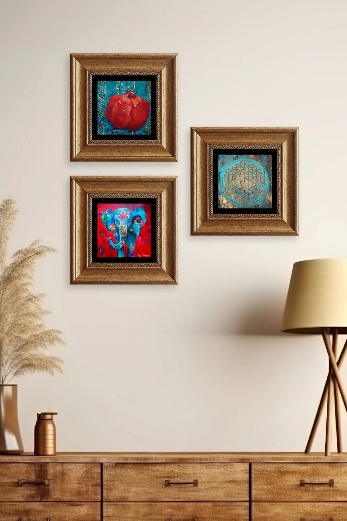 Mistik 3 lü Set Çerçeveli Taş Tablo 20 cm
