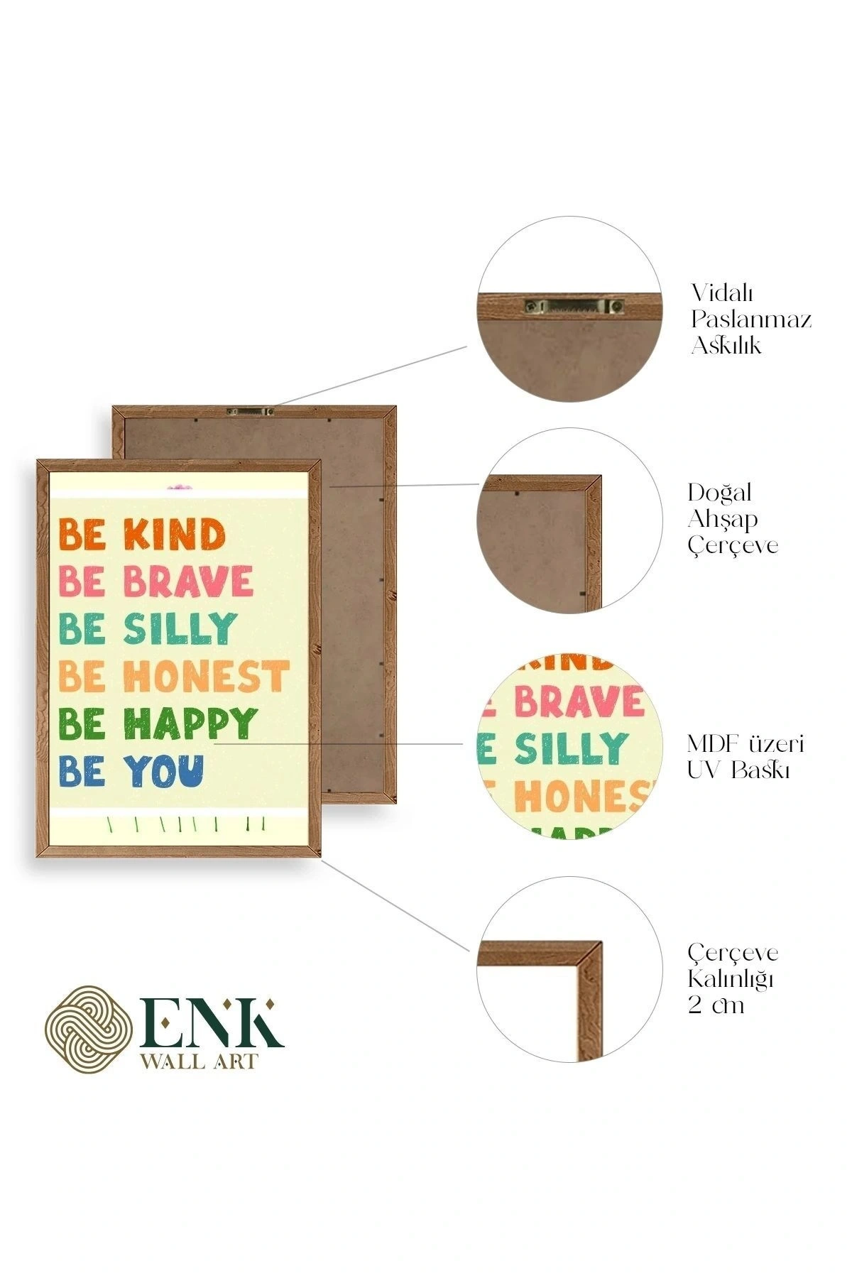 Tablolarımız gerçek ahşap çerçevelidir, çerçeve görünümlü değildir. ; ENK Wall Art Olarak Ahşap Çerçeveli Tablolar Üretiyoruz. ; Tablolarımız tek parça, 3 Parça, 5 Parça ve daha çok kategoride tasarımcılarımız tarafından ev ve ofisleriniz duvarları süslemek için tasarlanmaktadır. ; Ahşap Çerçeveli Duvar Tabloları ile yaşam alanlarınıza yepyeni bir görünüm kazandırın. ; Yıllarca dayanacağından emin olduğumuz sağlam çerçevelere sahip yüksek kaliteli ahşaptan üretilmiştir. ; İster bir köşeyi süslemek isteyin, ister evinizi yenilemek , bu ahşap tablolar herhangi bir yaşam alanına stil ve işlev getirecektir. ; Duvara kolay bir şekilde monte edilir. ; Uzun ömürlü kullanım için sağlam ahşap çerçeveden yapılmış, dayanıklı ve güçlü. ; Duvara monte edilebilir tasarımı, yaşam alanlarında veya yatak odalarında duvara kolayca asılmasını sağlar. ; Pürüzsüz üst yüzeyi temiz kalmayı kolaylaştırır. ; Herhangi bir stile uyacak şekilde çeşitli renklerde gelir. ; Kolay yeniden düzenleme için hafif ve portatif. ; Küçük oturma odaları veya dar alanlar için mükemmel boyut. ; Eve taşınma hediyesi olarak idealdir. ; Herhangi bir evin dekorunu süslemek için harika bir yol. ; Herhangi bir modern veya çağdaş iç tasarıma mükemmel bir katkı. ; Tablo içi 3 mm mdf (ahşap) malzeme üzeri uv baskıdır. ; Renkler canlı ve solma yapmaz. ; Kırılma, bükülme ve çizilmeye karşı dayanıklıdır.;