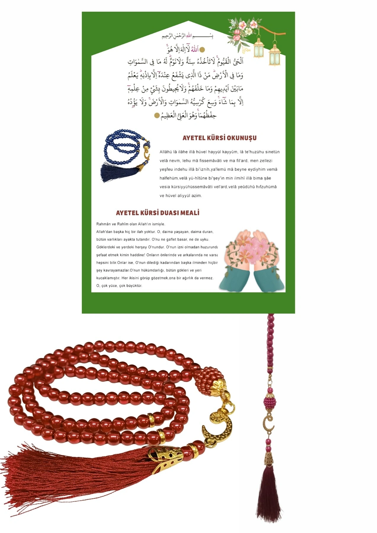 Namaz Tesbihi Vavlı 99'lu Cam İncili Ayet-el Kürsi Dua Kartı İle Fuşya Renk Hediyelik