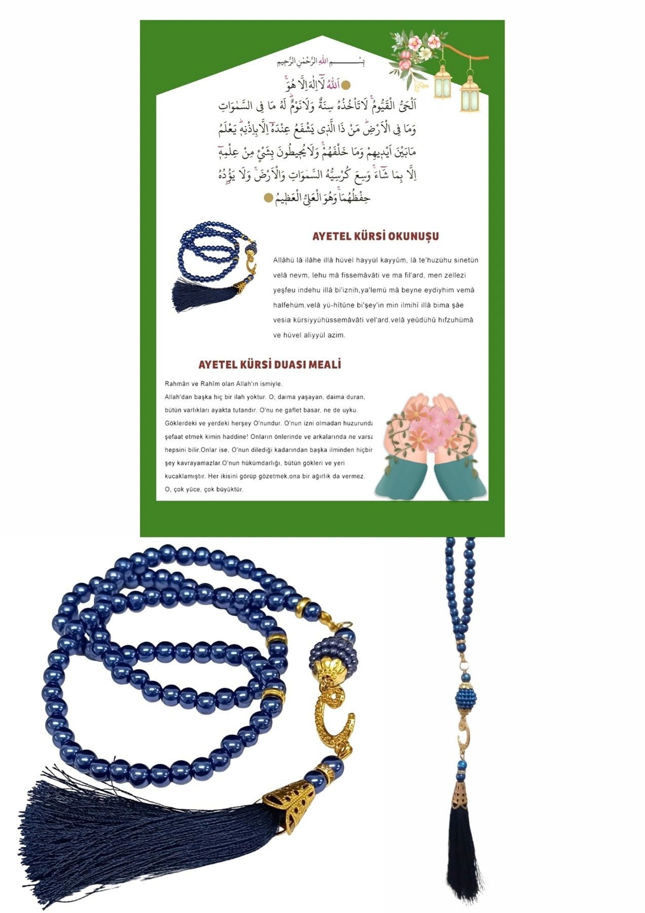 Namaz Tesbihi Vavlı 99'lu Cam İncili Ayet-el Kürsi Dua Kartı İle Lacivert Renk Hediyelik