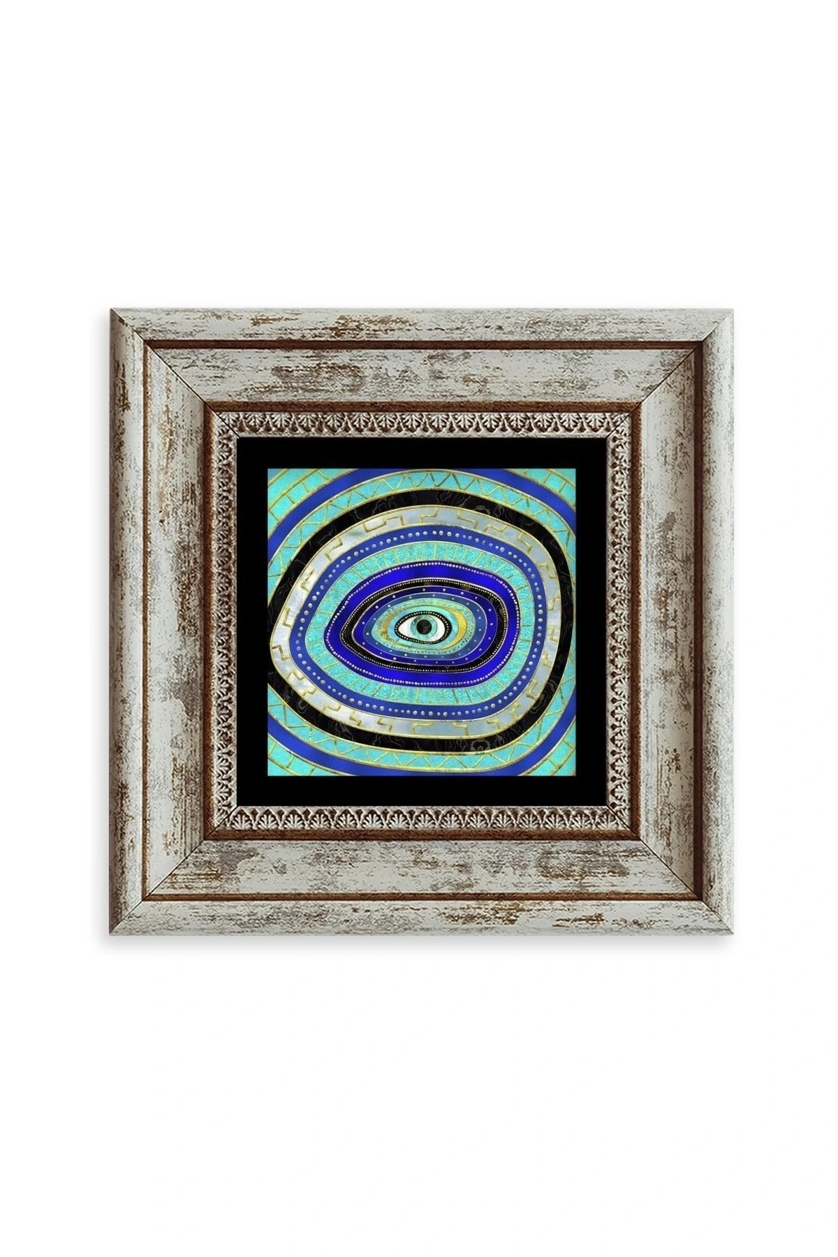 Nazar Boncuğu Çerçeveli Taş Tablo 20 cm