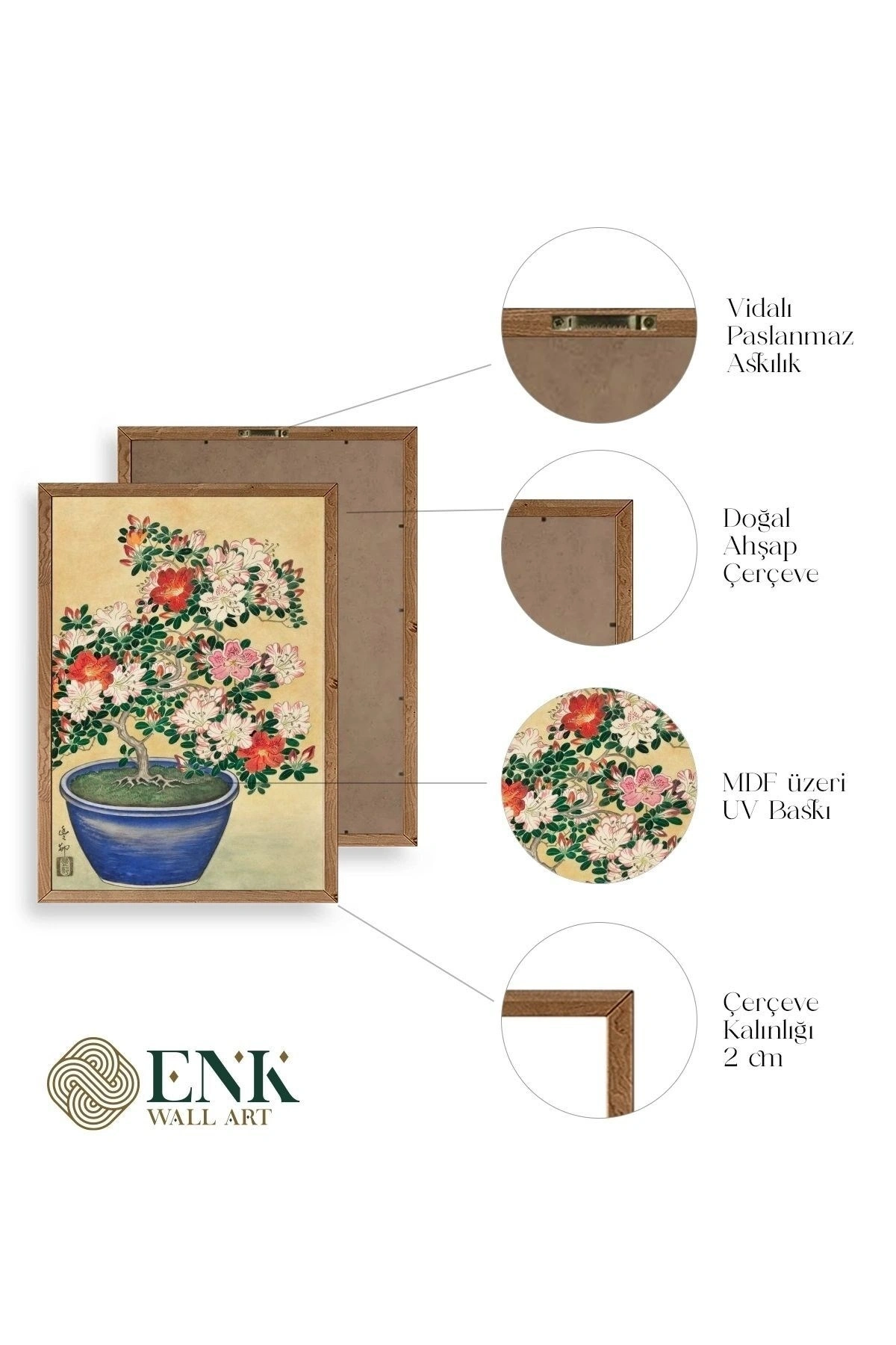 Tablolarımız gerçek ahşap çerçevelidir, çerçeve görünümlü değildir. ; ENK Wall Art Olarak Ahşap Çerçeveli Tablolar Üretiyoruz. ; Tablolarımız tek parça, 3 Parça, 5 Parça ve daha çok kategoride tasarımcılarımız tarafından ev ve ofisleriniz duvarları süslemek için tasarlanmaktadır. ; Ahşap Çerçeveli Duvar Tabloları ile yaşam alanlarınıza yepyeni bir görünüm kazandırın. ; Yıllarca dayanacağından emin olduğumuz sağlam çerçevelere sahip yüksek kaliteli ahşaptan üretilmiştir. ; İster bir köşeyi süslemek isteyin, ister evinizi yenilemek , bu ahşap tablolar herhangi bir yaşam alanına stil ve işlev getirecektir. ; Duvara kolay bir şekilde monte edilir. ; Uzun ömürlü kullanım için sağlam ahşap çerçeveden yapılmış, dayanıklı ve güçlü. ; Duvara monte edilebilir tasarımı, yaşam alanlarında veya yatak odalarında duvara kolayca asılmasını sağlar. ; Pürüzsüz üst yüzeyi temiz kalmayı kolaylaştırır. ; Herhangi bir stile uyacak şekilde çeşitli renklerde gelir. ; Kolay yeniden düzenleme için hafif ve portatif. ; Küçük oturma odaları veya dar alanlar için mükemmel boyut. ; Eve taşınma hediyesi olarak idealdir. ; Herhangi bir evin dekorunu süslemek için harika bir yol. ; Herhangi bir modern veya çağdaş iç tasarıma mükemmel bir katkı. ; Tablo içi 3 mm mdf (ahşap) malzeme üzeri uv baskıdır. ; Renkler canlı ve solma yapmaz. ; Kırılma, bükülme ve çizilmeye karşı dayanıklıdır.;
