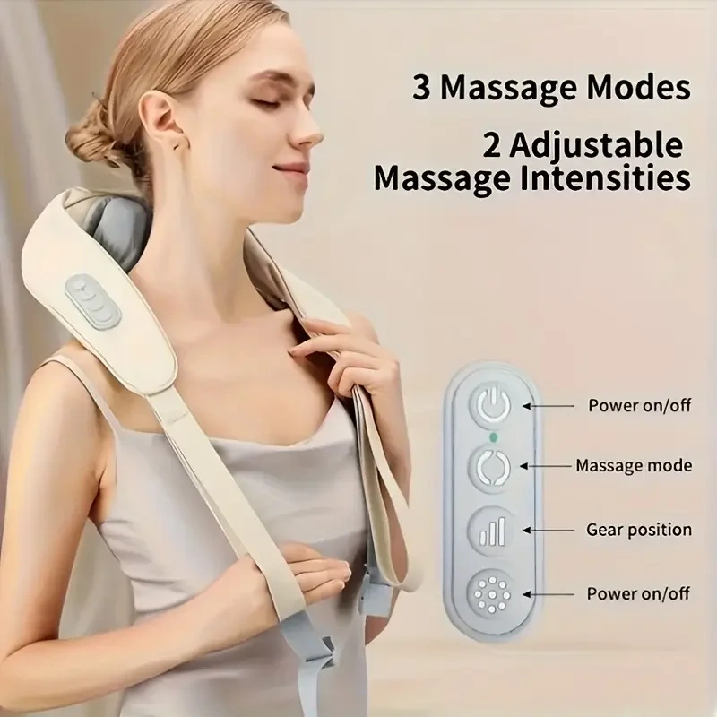 Boyun Masaj Aleti, Omuzlar, Bel ve Bacaklar için, Akupresür ile Rahatlatıcı Masaj Cihazı, - 3D Isıtmalı Derin Doku Masaj - Ev, Ofis veya Seyahat için Mükemmel Bir Hediye.