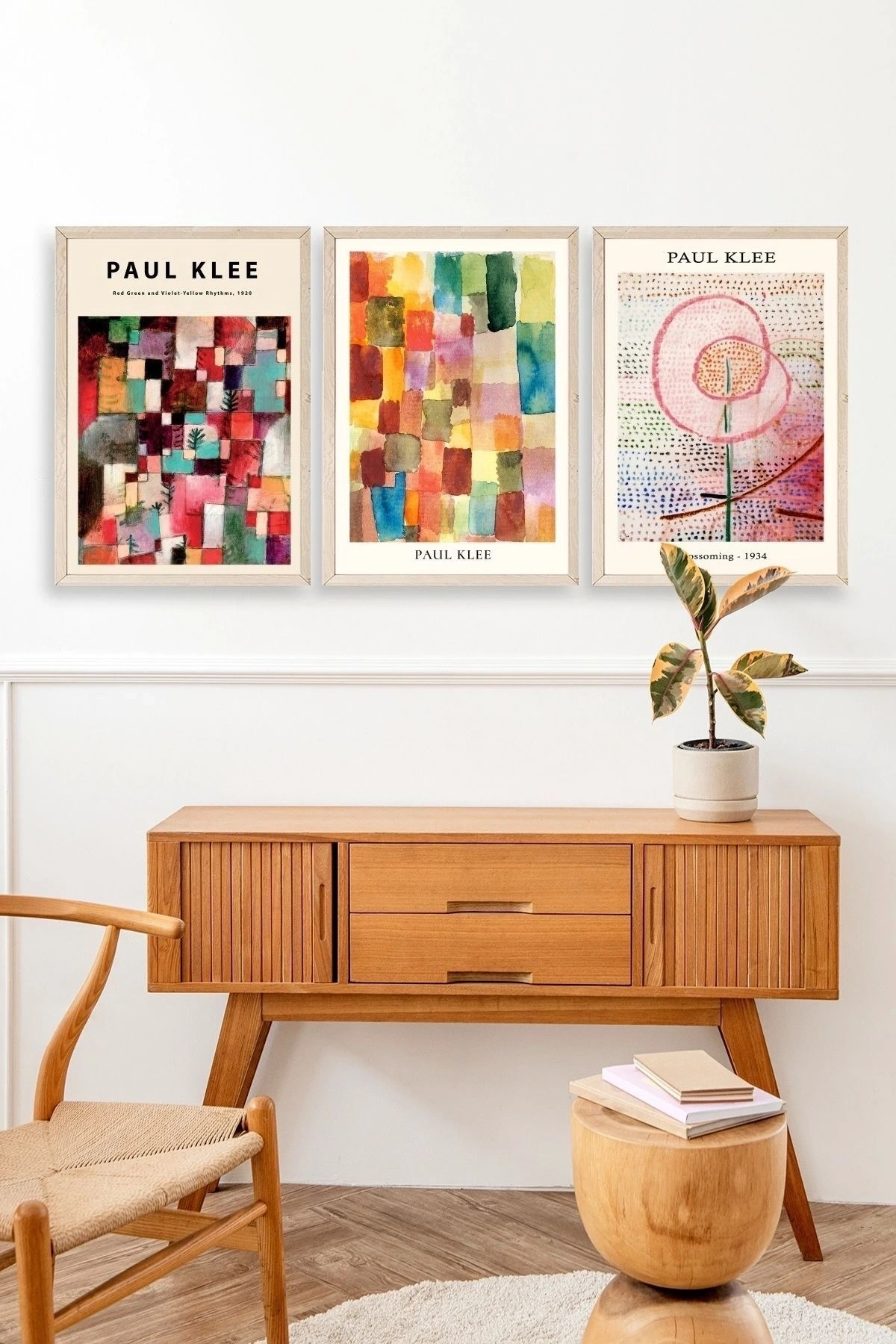 Paul Klee Üçlü Ahşap Çerçeveli Tablo 23 x 30