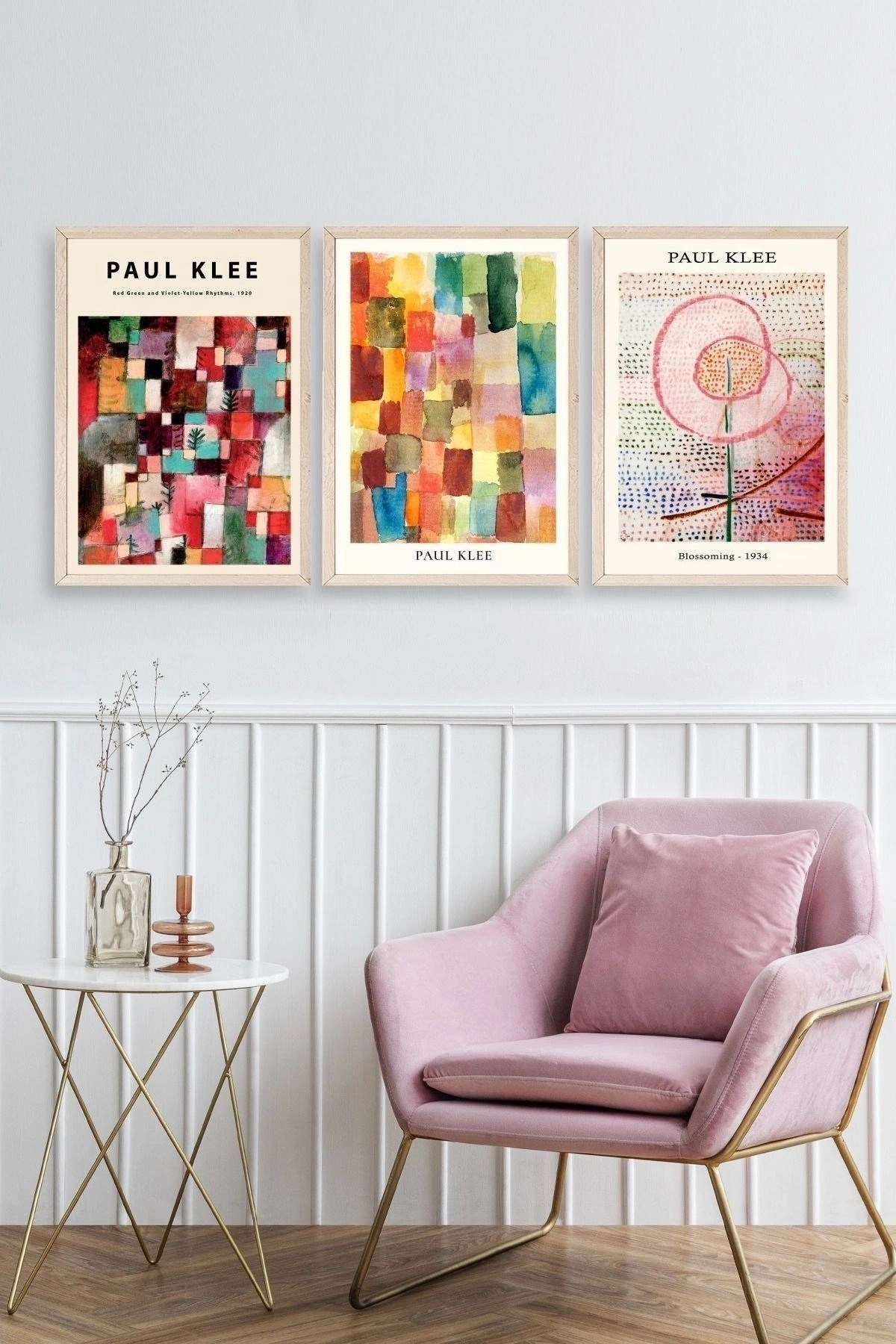 Paul Klee Üçlü Ahşap Çerçeveli Tablo 23 x 30