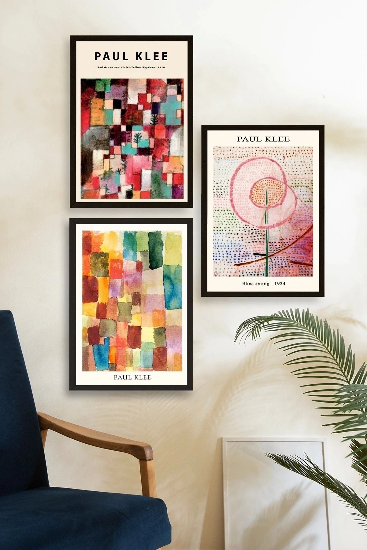 Paul Klee Üçlü Ahşap Çerçeveli Tablo 40 x 60