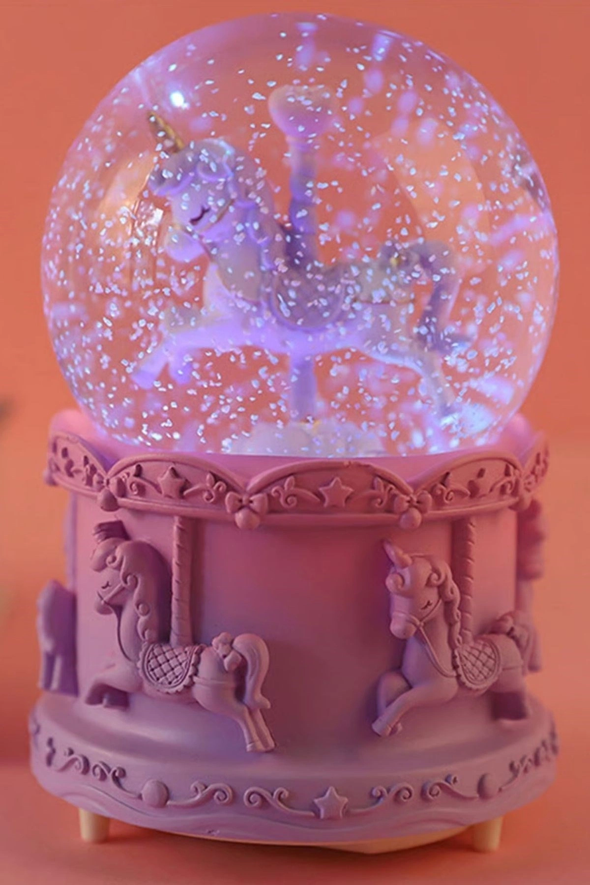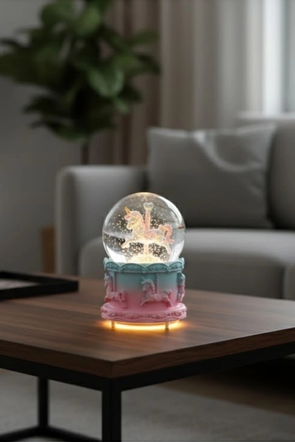 Pilli Işıklı Müzikli Kar Küresi–At Figürlü Eğlenceli Masaüstü Biblo, LED Aydınlatmalı Dekoratif Hediyelik Kar Küresi