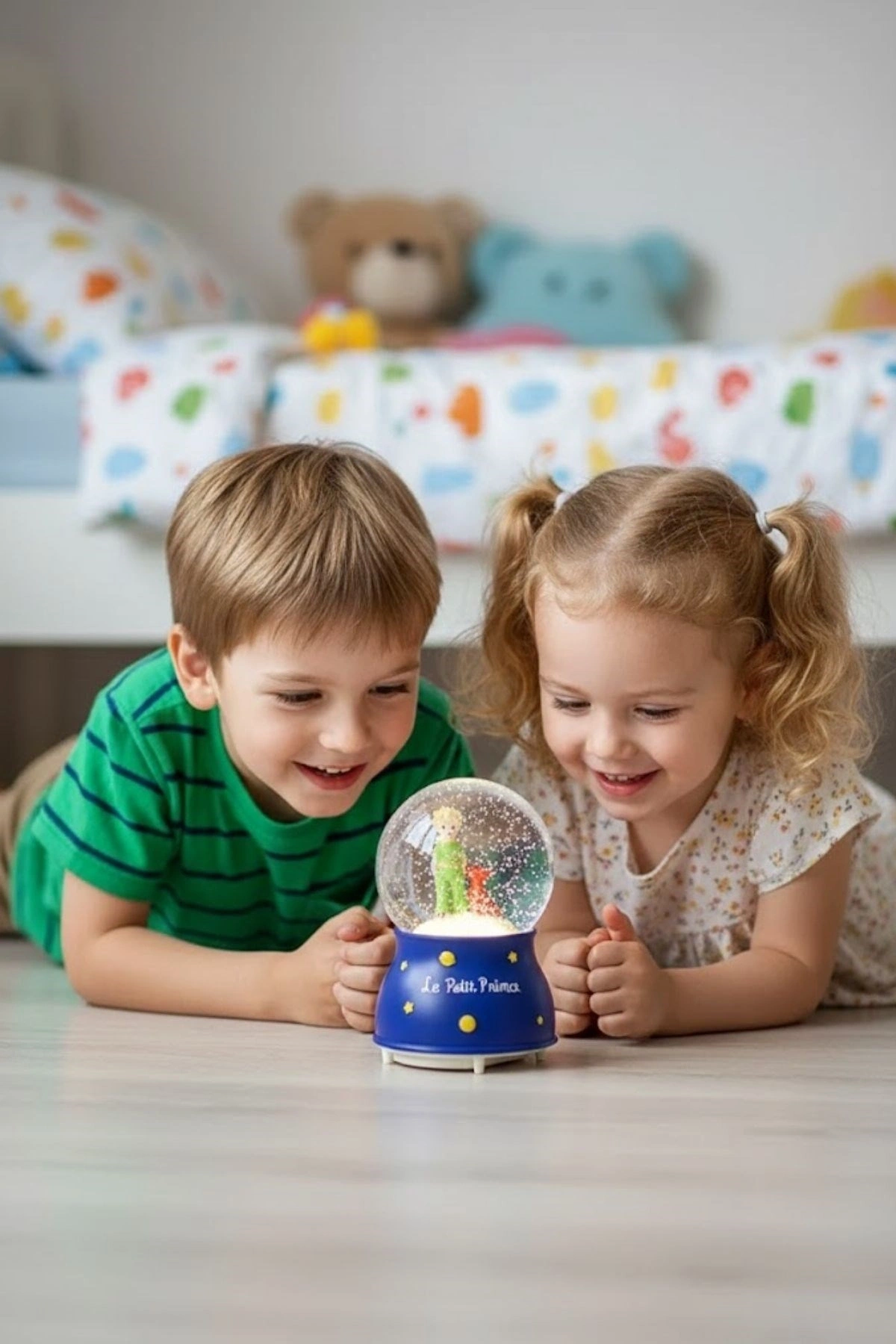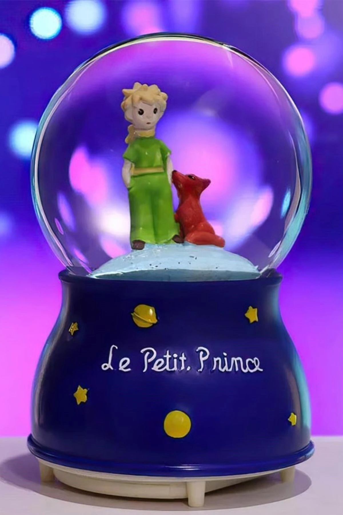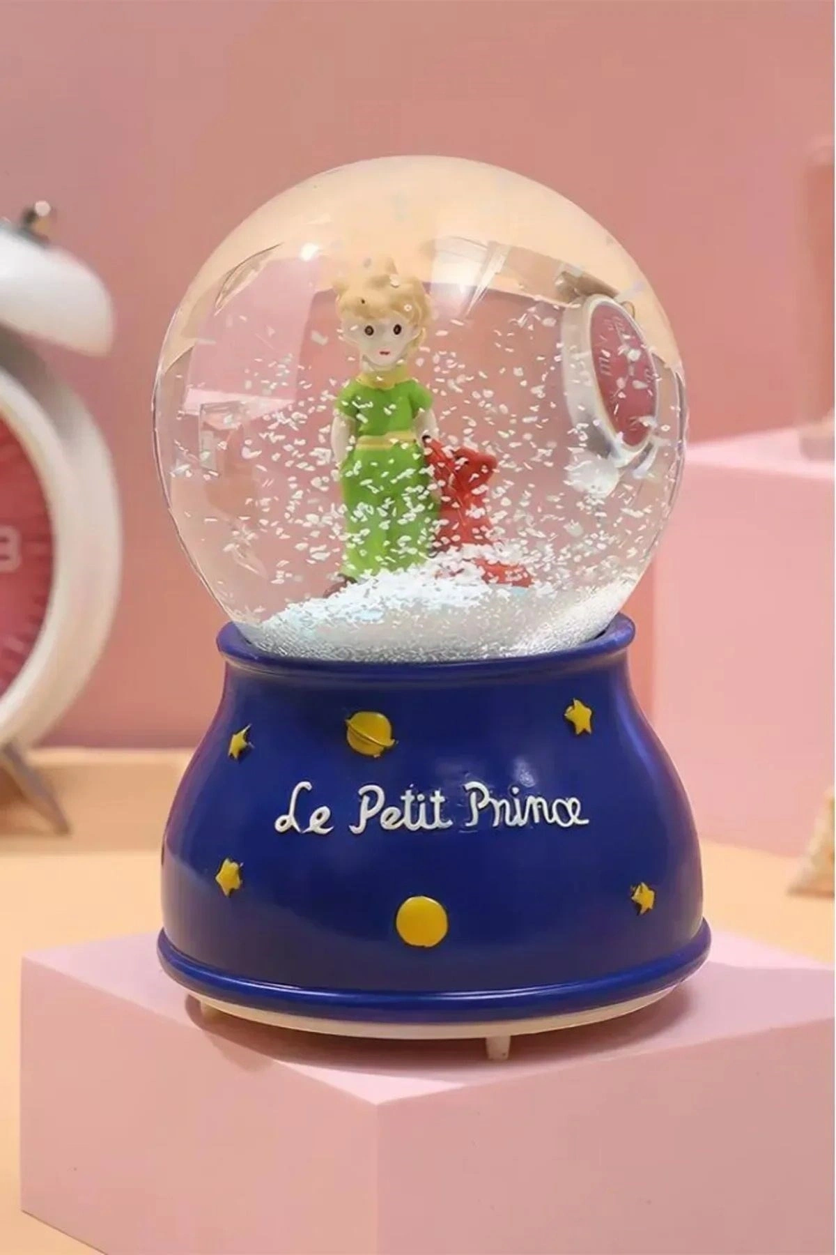 Pilli Işıklı Müzikli Kar Küresi–Le Petit Küçük Prens Figürlü Eğlenceli Masaüstü Biblo, LED Aydınlatmalı Dekoratif Hediyelik Kar Küresi