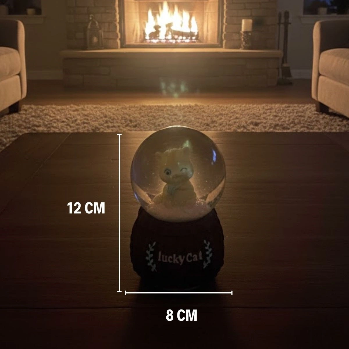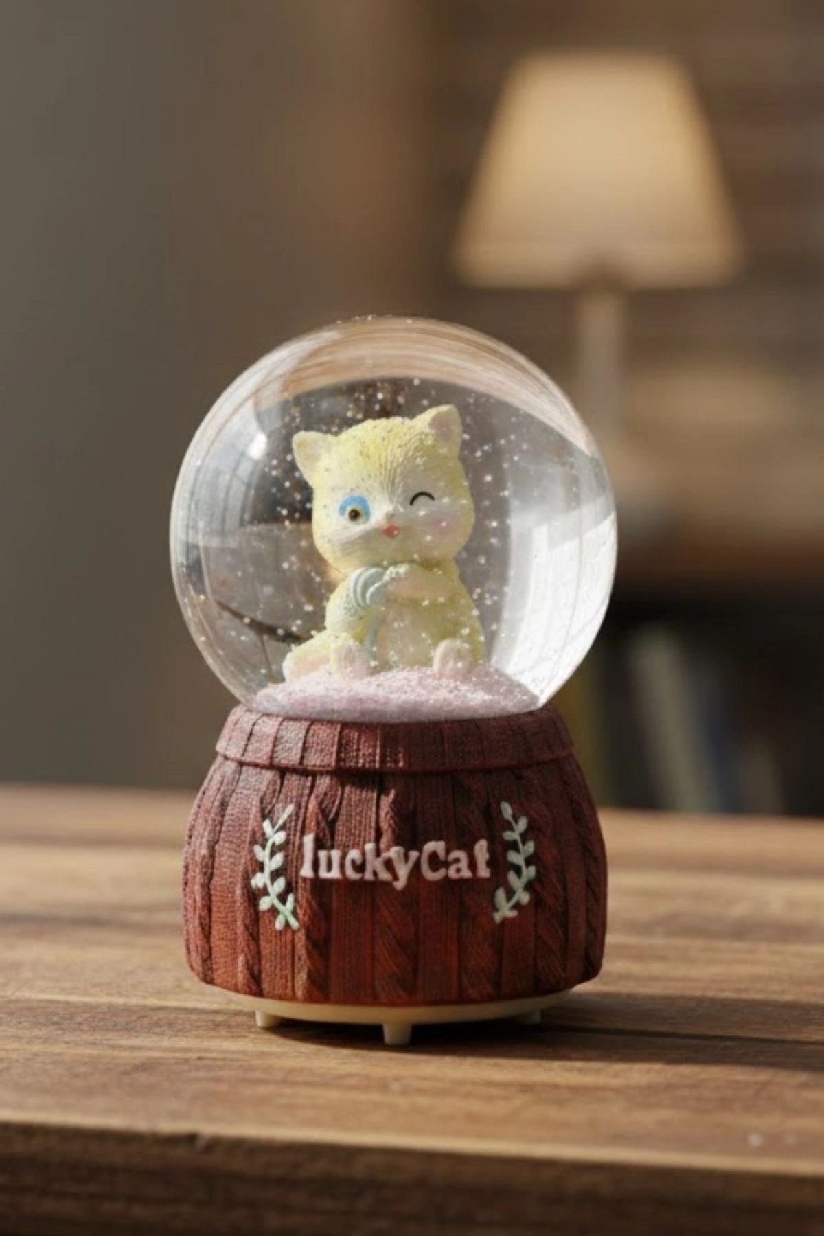 Pilli Işıklı Müzikli Kar Küresi – Şanslı Kedi Figürlü Eğlenceli Masaüstü Biblo