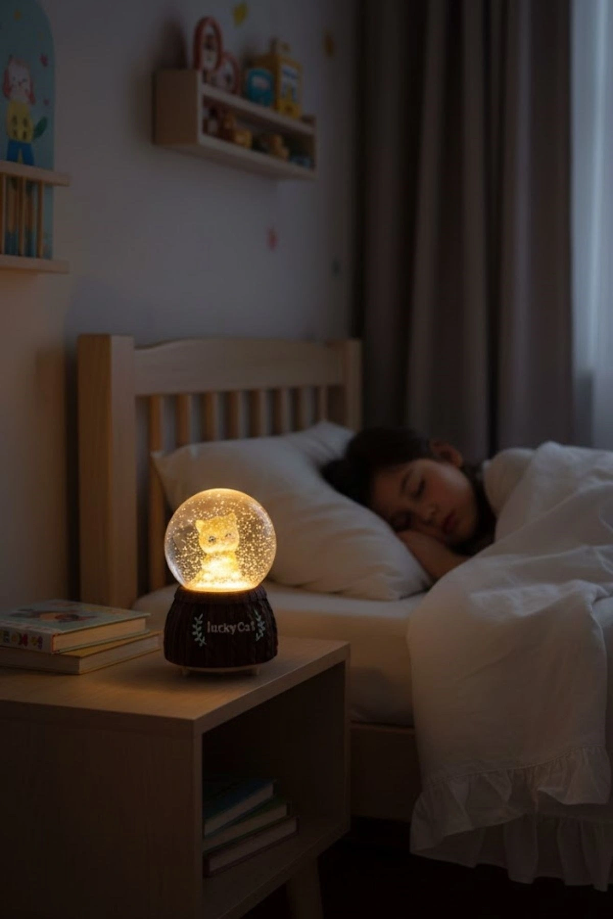 Pilli Işıklı Müzikli Kar Küresi, şans ve mutluluğun sembolü şanslı kedi figürü (Maneki Neko) tasarımıyla yaşam alanlarınıza neşe ve pozitif enerji katar. Eğlenceli görünümü, LED aydınlatması ve müzik özelliği sayesinde hem dekoratif hem de dikkat çekici bir masaüstü aksesuarı olarak öne çıkar.