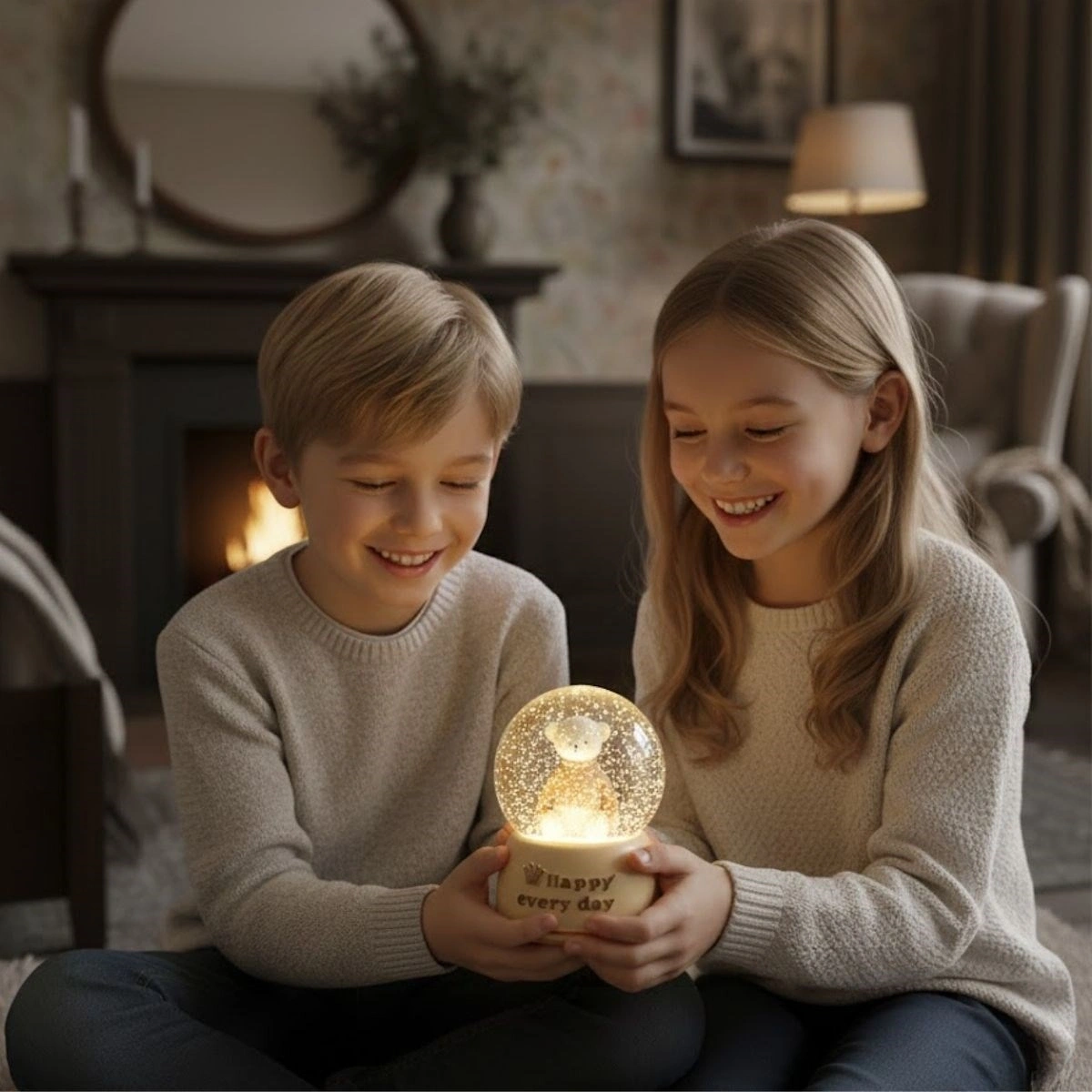 Pilli Işıklı Müzikli Kar Küresi–Sevimli Ayıcık Figürlü Eğlenceli Masaüstü Biblo, LED Aydınlatmalı Dekoratif Hediyelik Kar Küresi