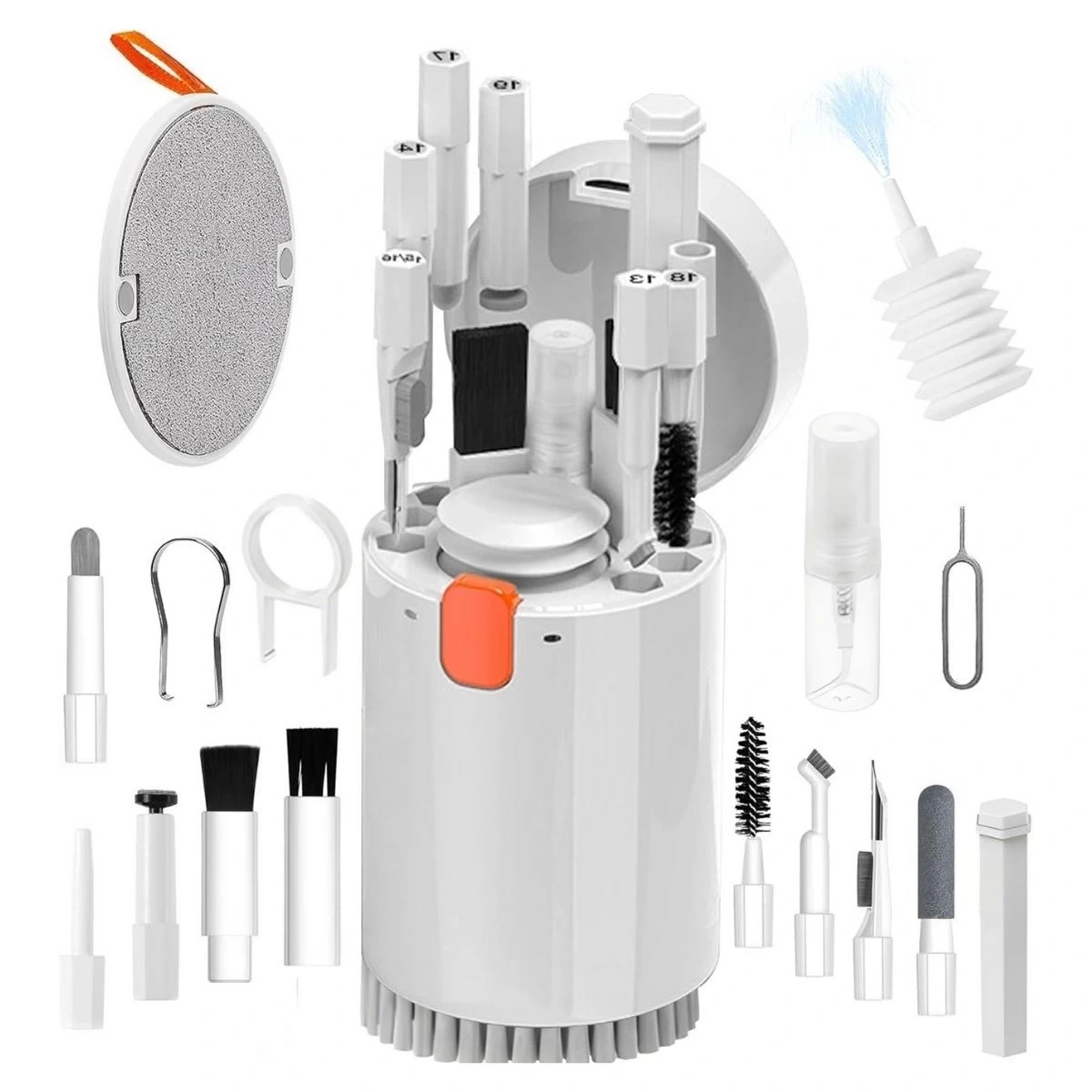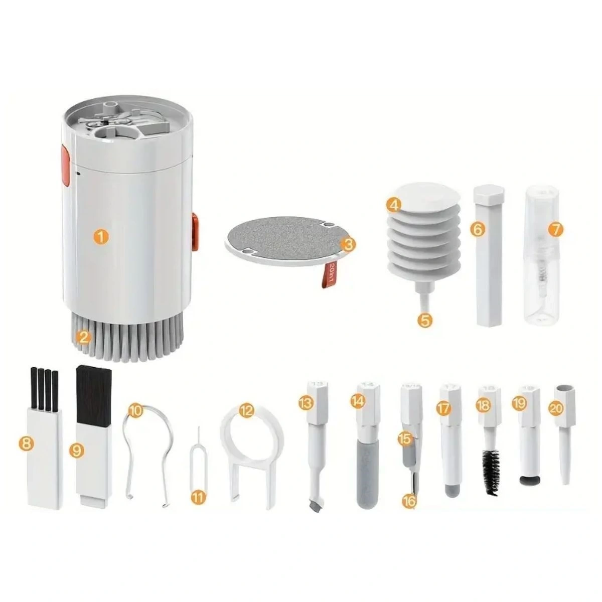 20 Parça Çok Fonksiyonlu Bilgisayar Temizleme Seti, teknolojik cihazların her köşesini kapsamlı bir şekilde temizleyebilmeniz için 20 farklı parça sunan, çok yönlü bir temizlik kitidir. Detaylı ve titiz bir temizlik deneyimi sunan bu set, özellikle klavye, cep telefonu, kablosuz kulaklık gibi günlük hayatta sıkça kullanılan ve kirlenmeye müsait cihazların hijyenini sağlamak için geliştirilmiştir. İşte setin içeriğindeki her bir parçanın özellikleri ve fonksiyonları: